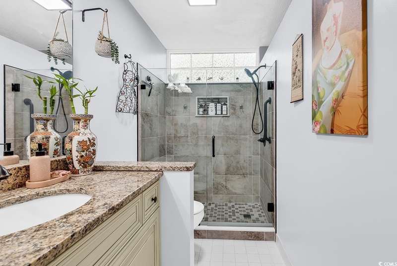 Beautiful 3BR/2BA first-floor condo in South Bay Lakes! Enjoy pond views from your screened-in patio. Spacious living area with beautiful floors, granite countertops in the kitchen, and plenty of cabinet space. The primary suite features a newly renovated tile shower with glass doors. South Bay Lakes offers resort-style amenities including 2 pools, clubhouse, and picnic areas. Just a short ride to Surfside Beach, Surfside Pier, shopping, dining, golf, and Myrtle Beach International Airport. Long-term rentals allowed, perfect for full-time living, vacation home, or investment! Location is EVERYTHING!