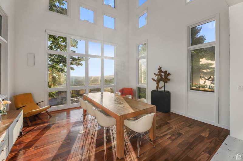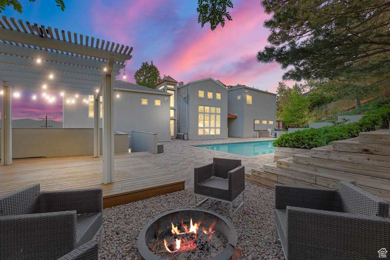 OPEN HOUSE Saturday, Nov 8th 9-11am. Don't miss the DRONE FOOTAGE in the TOURS section. An iconic Arcadia Heights residence, this contemporary European 2-story blends unique European architecture with modern sophistication (over $734,000 in recent upgrades!). A stunning kitchen opens to elegant formal dining space with formal living room and wet bar just down the hall, all with impeccable views and rich tiger wood South American hardwood flooring! The beautifully updated kitchen has views of the valley in front and expansive pool, fountain, and yard in the back! With heated floors throughout, it is perfect for gathering and entertaining. The oversized primary suite is a true retreat, featuring a spacious walk-in closet, a luxurious bath, and direct access to the private balcony overlooking the Salt Lake valley, covering a space for a hot tub and offering direct access to the 38ft x 17.5 ft saltwater pool. A fabulous sitting porch, just below the master deck and in front of the hot tub area also allows for unobstructed valley views. Rare for The Arcadia Heights neighborhood, the .52-acre lot offers valley views but no backyard neighbors, a private pool on the house main level, a firepit, gazebo, upper level patio, and direct access to Arcadia Heights trails out your backyard! All within minutes of Park City, multiple canyons, I-80 and I-215 freeways, SLC airport, shopping, dining, and the vibrant Salt Lake City lifestyle. This house is one-of-a-kind!! Over $734,000 in recent upgrades! The updated German kitchen with Italian appliances and induction range is unlike any other! Enjoy the heated saltwater pool, (POOL SIZE 38 FT x 17.5 foot 34,000 gallons). Check out the custom updated bathrooms as well as the tiger wood floors that will delight the most discriminating buyers. Incredible valley views and spectacular sunsets await! Private deck off the master! Central air, 6 mini splits, and radiant flooring throughout for optimum temperature control and comfort. Covered deck, and large patio! Also wired for a hot tub. Walking trails are steps away, right outside the back gate is the Arcadia trail (part of the Bonneville Shoreline Trail System) Mature landscaping creates a very private setting. Call today for a private showing! SEE THE ATTACHMENTS SECTION FOR A LIST OF ALL THE UPDATES AND IMPROVEMENTS!