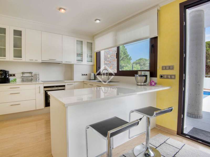 This fantastic house, built in 2014, is located in a very quiet residential area with a private garden, swimming pool, a large porch/chill out and a barbecue area. It has everything required to enjoy a Mediterranean lifestyle as a family. This property stands out for its thoughtful distribution and high-end features designed for comfort and relaxation. The ground floor of the house offers a spacious living room/dining room with convenient and practical access to the pool and porch. In addition, this level includes the large kitchen with utility area and access to the terrace with a barbecue. Finally, there is a guest bedroom with walk-in wardrobe and bathroom. Outdoors, the Mediterranean lifestyle can be fully enjoyed thanks to a beautifully maintained private garden, a swimming pool, a chill-out porch, and a barbecue area directly connected to the kitchen. The upper floor consists of a large bedroom, a bathroom and a walk-in wardrobe, two more double bedrooms that share a bathroom and a lovely south-facing terrace with sea views; perfect for enjoying the sun throughout the day. The basement level includes a private gym, sauna with cold shower, and a boiler room, as well as a spacious garage with capacity for up to four vehicles; ideal for a family or those needing extra storage. The house combines space, functionality and quality finishes throughout, making it a perfect year-round home or holiday residence. Overall, this is a lovely villa that is perfect for enjoying family life and the Mediterranean climate of the Costa Brava.