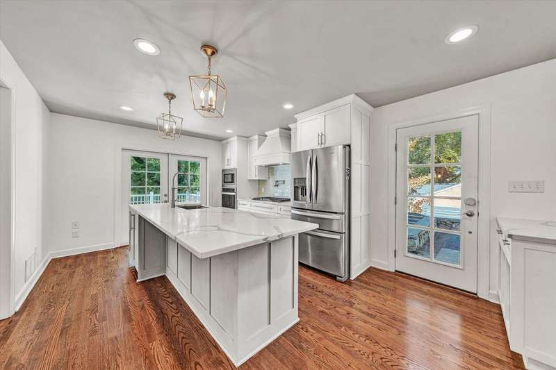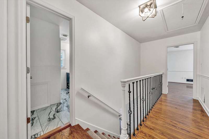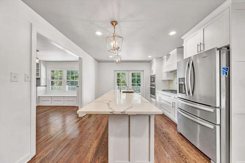 This stunning fully renovated 2-story brick Colonial seamlessly blends timeless charm with modern luxury. Step inside to findrich hardwood floors, custom built-ins, and elegant moldings throughout. The main level boasts a spacious living room with a cozy fireplace that opens to a brand-new back deck, dining room, a stylish half bath, and a chef's dream gourmet kitchen featuring stainless steel appliances, quartz countertops, a massive pantry with a second full-size refrigerator, and a wine cooler. Upstairs, you'll find four generously sized bedrooms and two full baths, including a luxurious primary suite with a walk-in closet featuring built-in shelving and a spa-like en-suite bathroom with a double vanity and a large walk-in tile shower. The walk-out lower level, finished with