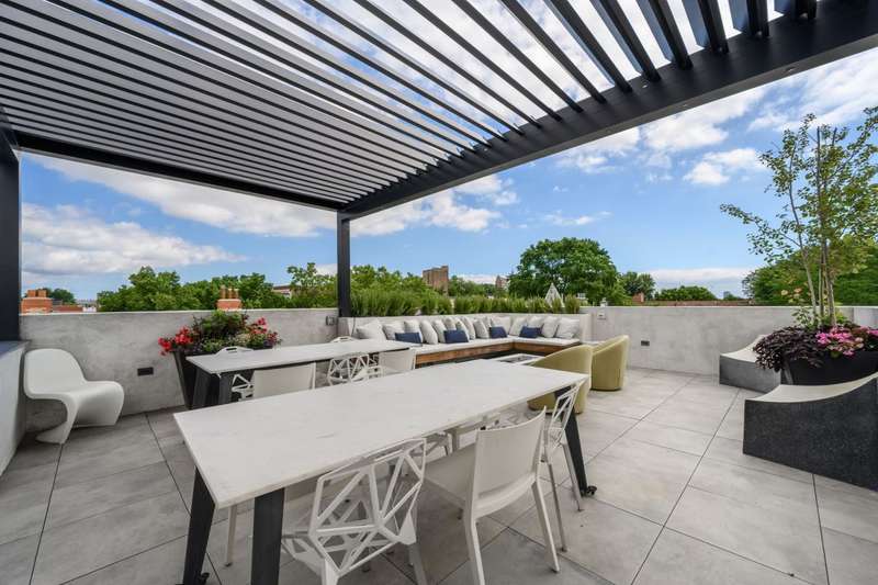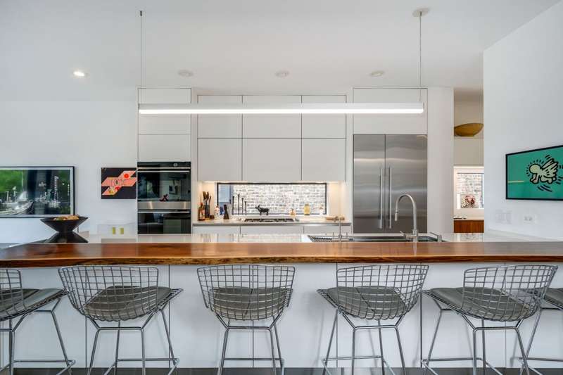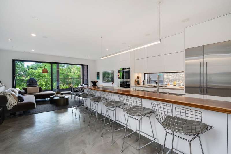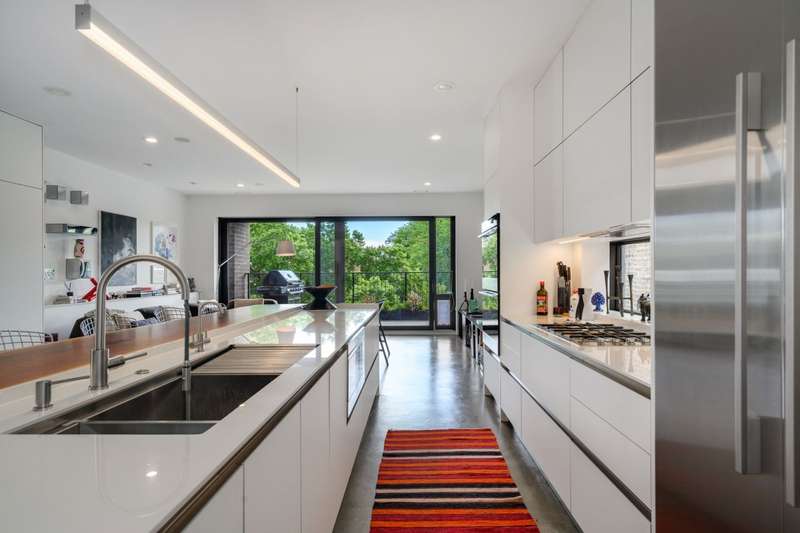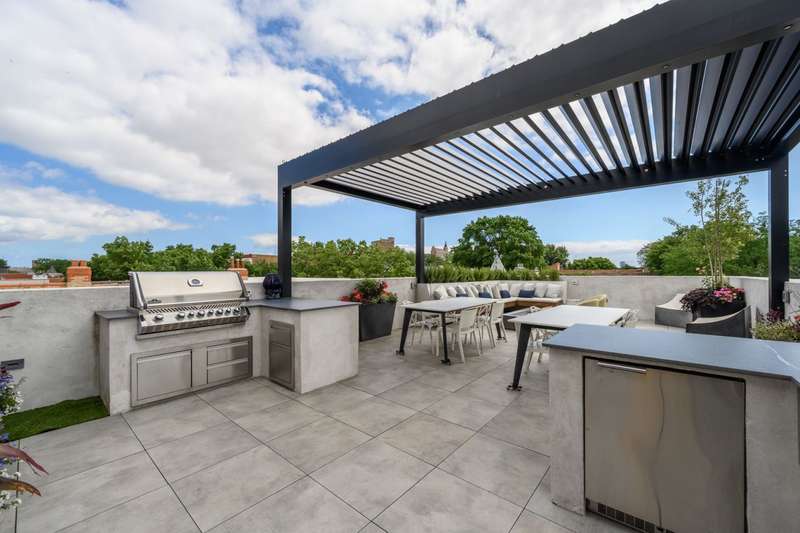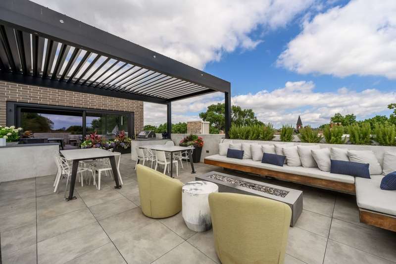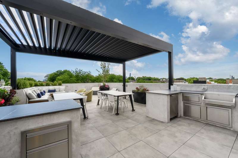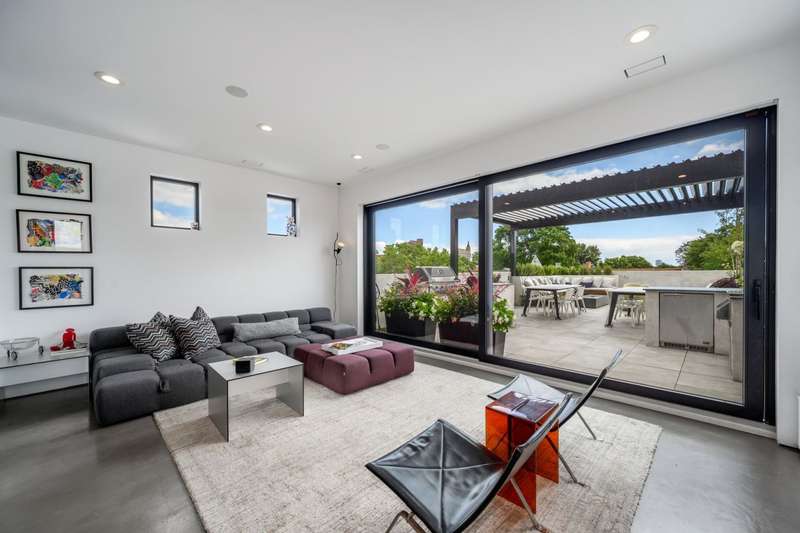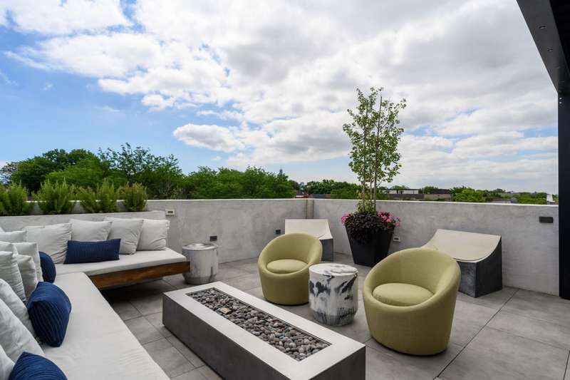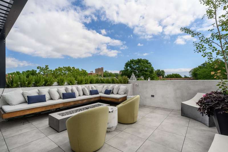Step into refined living in this stunning Wicker Park duplex-up penthouse, set on an oversized lot on a quiet, tree-lined street. Designed for seamless indoor/outdoor living, this showstopping home features soaring 10' ceilings and 8' doors, polished concrete heated floors, in-ceiling Sonos surround sound, and an impressive wall of sliding glass doors that flood the space with natural light. The chef's kitchen is a dream, featuring a walnut live-edge island, Dekton countertops, an Artemide kitchen light fixture, Miele and Fisher & Paykel appliances, and abundant storage - all flowing effortlessly into the open living and dining areas, which open directly onto a spacious private deck -perfect for morning coffee or unwinding in the evening. The main level also includes a serene primary suite with a spa-inspired bath featuring a walk-in shower and soaking tub, along with a large walk-in closet. The home also includes a high-end steam humidifier system - an upgraded addition that enhances air quality and comfort year-round. Upstairs, you'll find three additional bedrooms with generous closet space and large windows, as well as a second family room with a custom built-in wet bar that spans the entire wall and serves as a true statement piece. Step outside to one of the home's most impressive features: a sprawling private rooftop oasis, built for entertaining. This outdoor retreat includes an electric pergola, built-in gas grill, two outdoor refrigerators, Paloform outdoor fireplace, Roca tiles, perimeter lighting, and an outdoor dog run (on both levels) - making it feel like your own private lounge in the heart of the city. The location offers easy access to Milwaukee, North Ave, Division, and is within walking distance to Wicker Park. You're also just steps from renowned restaurants, coffee shops, bakeries, the 606 Trail, CTA transit, and more. One garage parking space included-this is a rare opportunity to own a one-of-a-kind home designed for both comfort and style.
