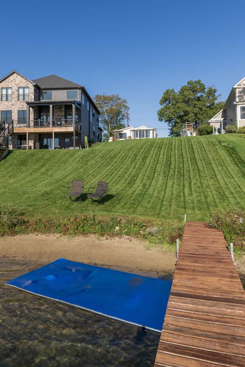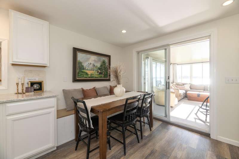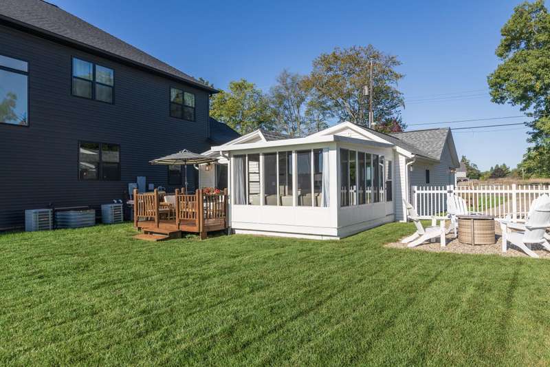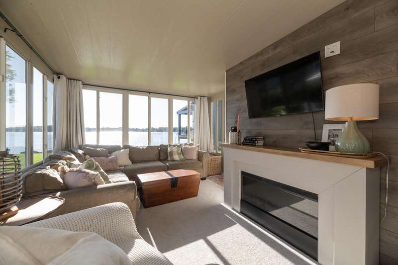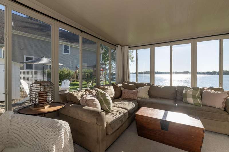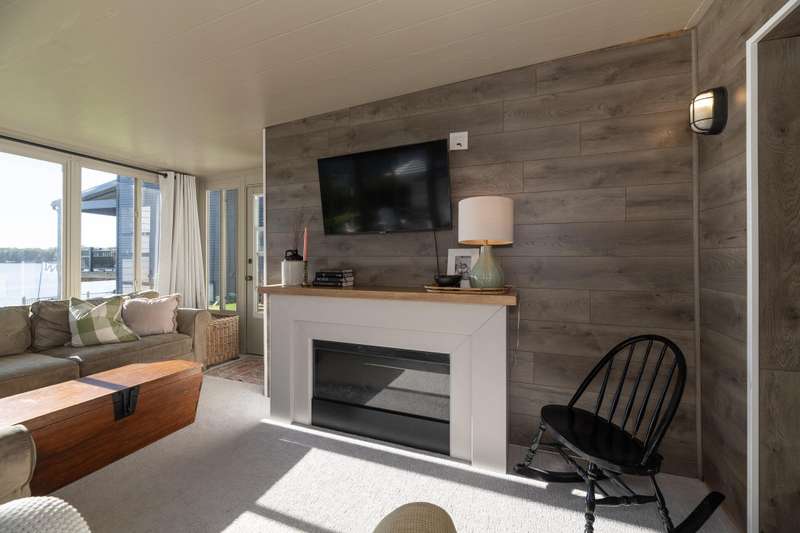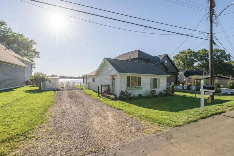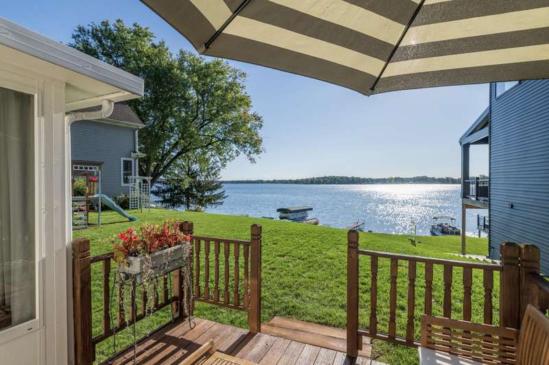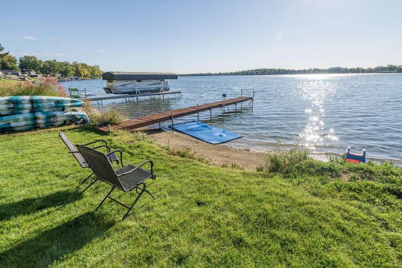 Welcome to your private paradise on Austin Lake! This beautiful home has had many new updates and offers unparalleled lake views and a fantastic layout perfect for modern living. The bright living room flows seamlessly into the updated kitchen, creating an ideal space for easy entertaining. Two bedrooms are conveniently located off the living area and feature vaulted ceilings and deep closets. The private primary suite, situated off the kitchen, is a true retreat with a sliding door to the deck - wake up to the gentle sound of waves and gorgeous sunrises. Just off the kitchen, a cozy sunroom with a fireplace is the perfect spot to relax in any season. The large backyard is an entertainer's dream, featuring a lovely deck for dining and a patio with fire pit area for memorable gatherings. Don't miss this lakeside gem! Updates include new siding, new shutters and window box, new roof above primary bedroom, new shed, new fence, new mailbox, new landscaping, new paint inside kitchen and bathroom, and new carpet in sunroom.