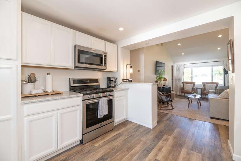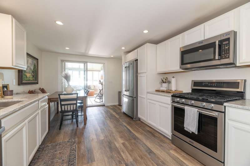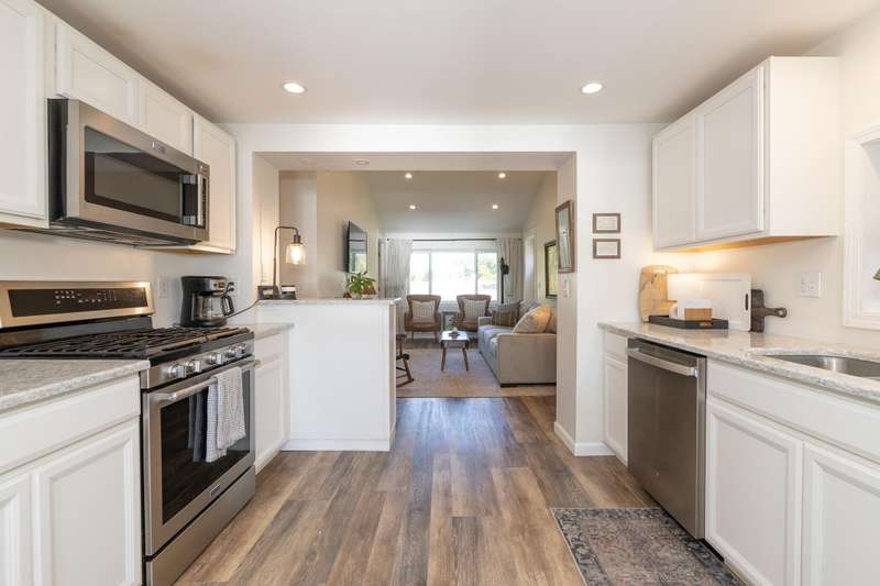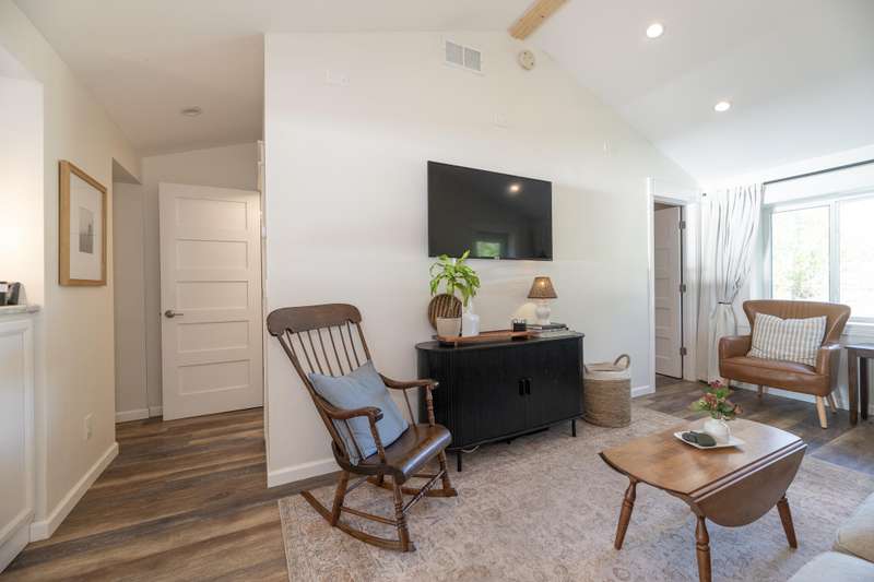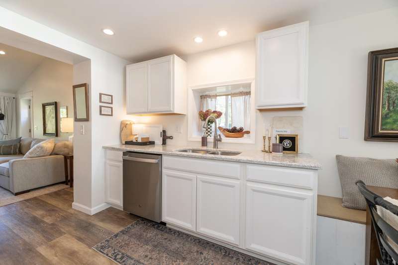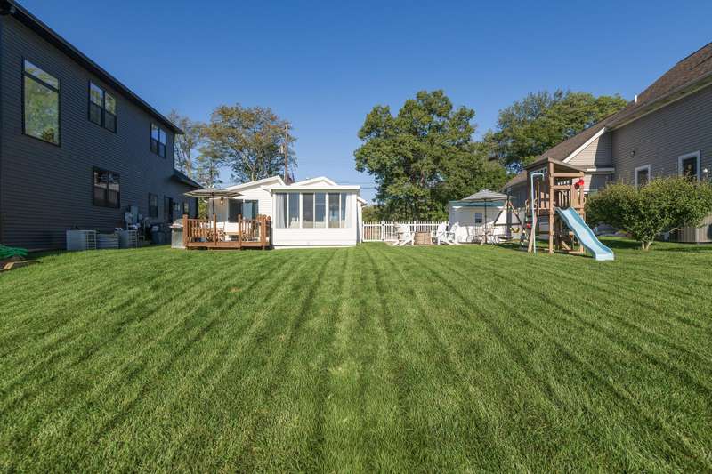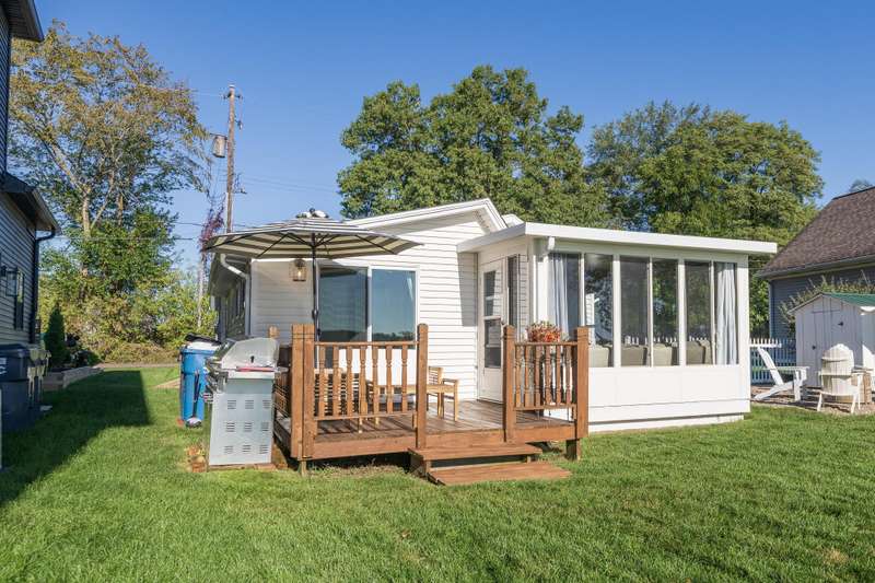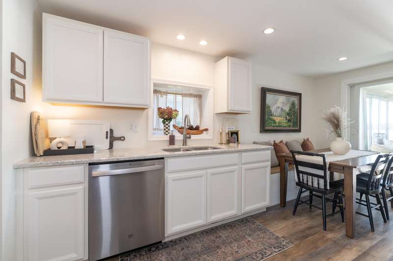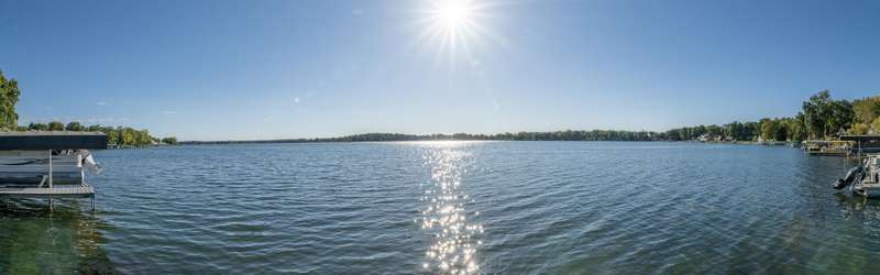 Welcome to your private paradise on Austin Lake! This beautiful home has had many new updates and offers unparalleled lake views and a fantastic layout perfect for modern living. The bright living room flows seamlessly into the updated kitchen, creating an ideal space for easy entertaining. Two bedrooms are conveniently located off the living area and feature vaulted ceilings and deep closets. The private primary suite, situated off the kitchen, is a true retreat with a sliding door to the deck - wake up to the gentle sound of waves and gorgeous sunrises. Just off the kitchen, a cozy sunroom with a fireplace is the perfect spot to relax in any season. The large backyard is an entertainer's dream, featuring a lovely deck for dining and a patio with fire pit area for memorable gatherings. Don't miss this lakeside gem! Updates include new siding, new shutters and window box, new roof above primary bedroom, new shed, new fence, new mailbox, new landscaping, new paint inside kitchen and bathroom, and new carpet in sunroom.