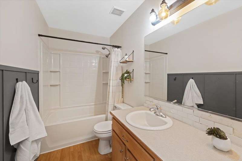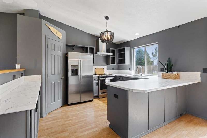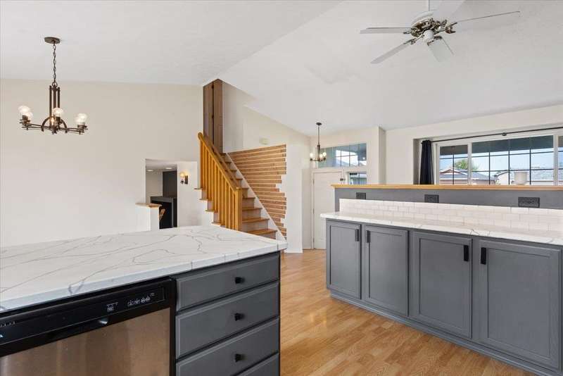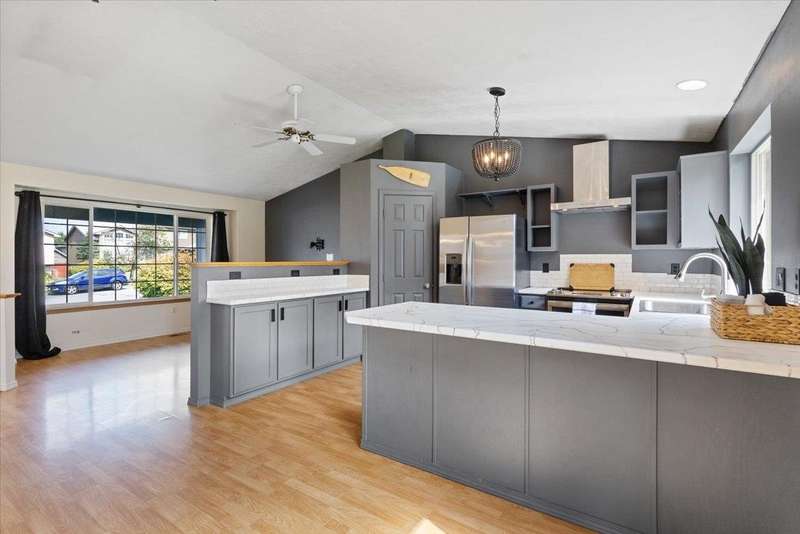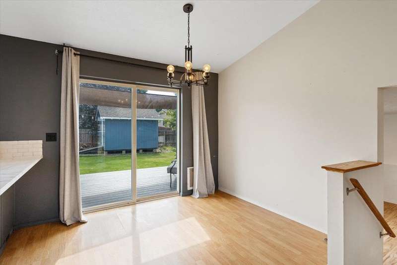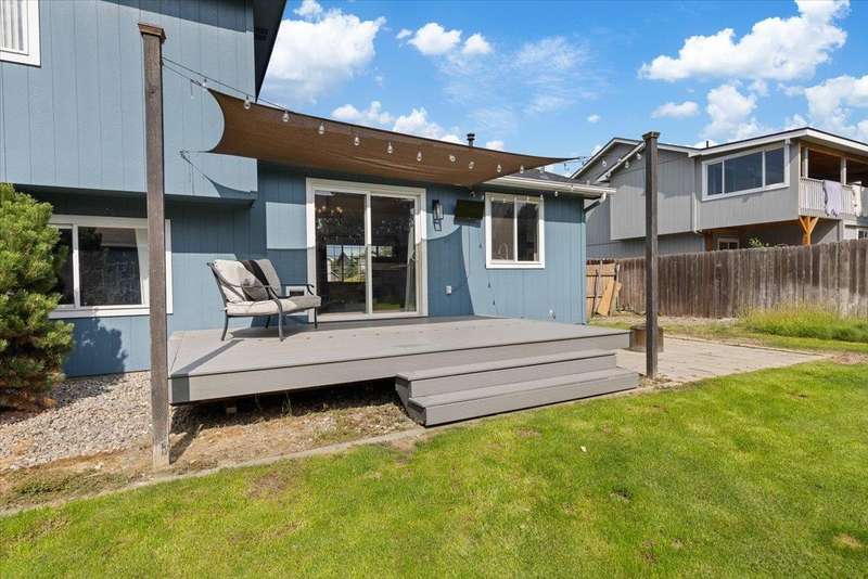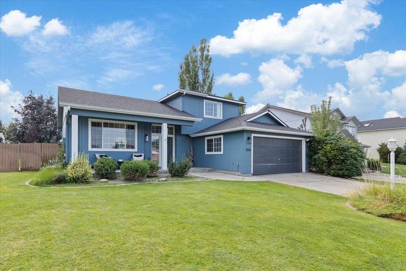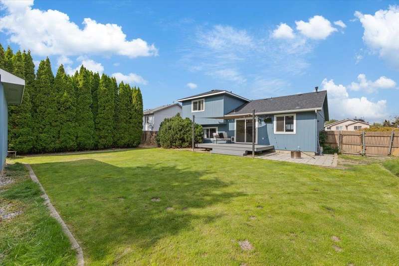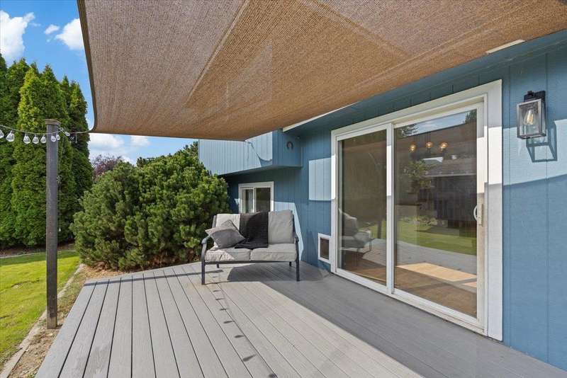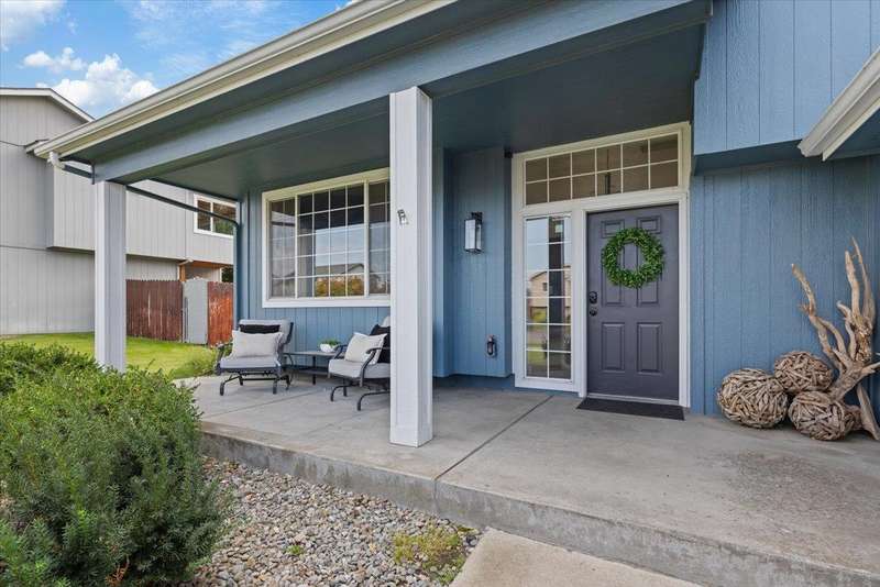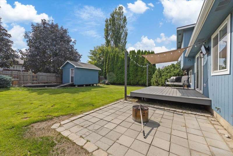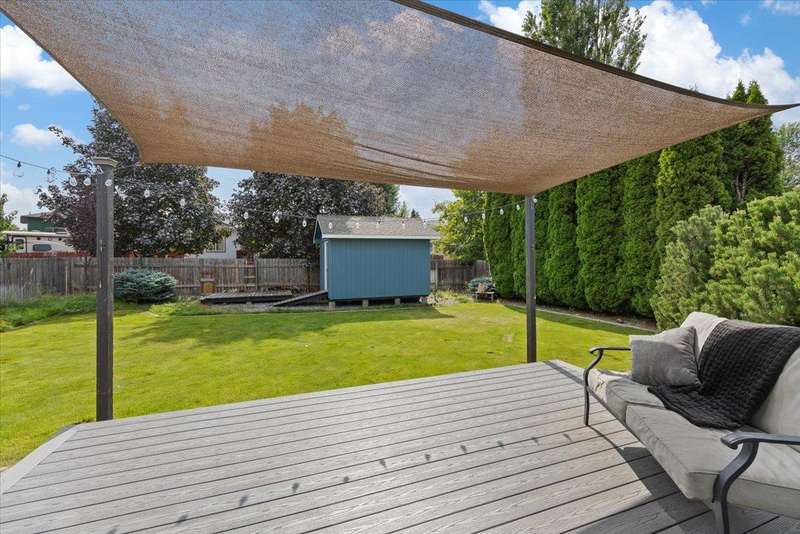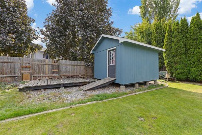 Charming 3-bed, 2-bath home in a family-friendly neighborhood with sidewalks. Spacious kitchen includes pantry, ample storage, and newer stainless steel appliances. Cathedral ceilings create a bright, open living space. Gas forced air heating and central A/C ensure year-round comfort. Enjoy the only covered front patio in the area—great for relaxing or hosting. Backyard features a Trex deck (installed in 2023) and a fully fenced, level yard—ideal for pets, kids, or gardening. Matching storage shed on reinforced concrete add function and curb appeal. New roof in 2022. Located near schools, restaurants and amenities. A great opportunity—don’t miss it!