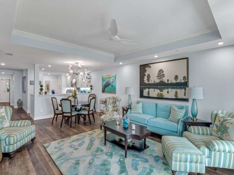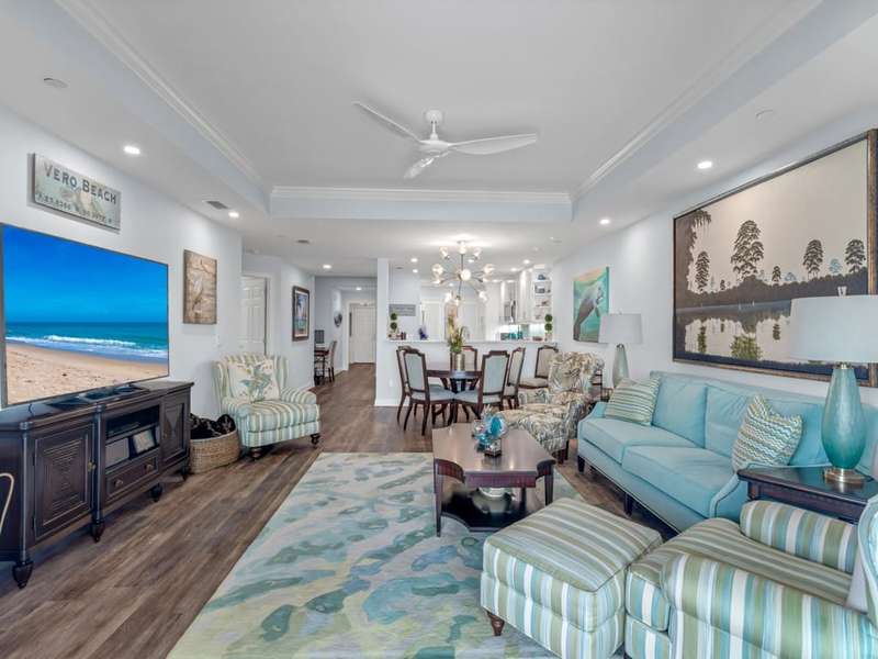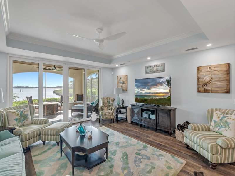 Stunning Riverfront Rental Opportunity in desirable Grand Harbor. Bright, airy, and ready for your next vacation. Short drive to the beach, shops, grocery, and more. No membership included. Available now! Sizes are approx/subject to error. Property and contents represented in photo subject to change.