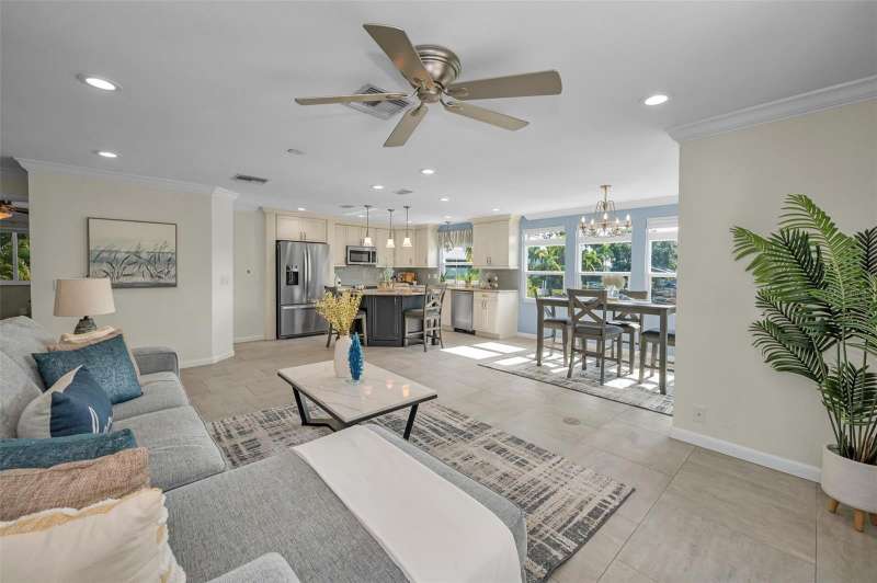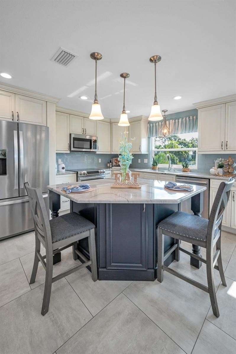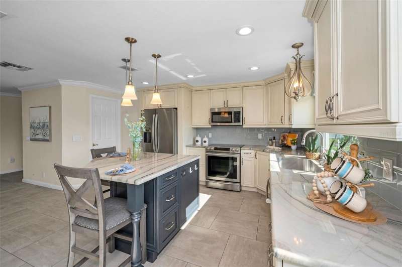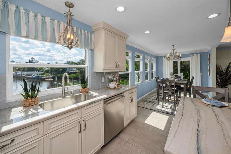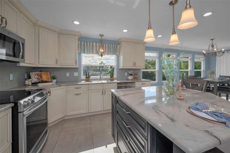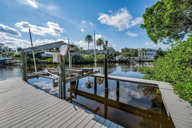 Under contract-accepting backup offers. WOW!!! Huge price reduction of $100,000. Sellers are looking for an offer with little or no contingencies and a quick closing. Welcome to the most spectacular waterfront piece of property in Crystal Beach. This estate size property is at the end of a very quiet street and offers almost 1/2 acre of fenced privacy. Over 232 feet of waterfront with direct gulf access. This quaint coastal community has no deed restrictions. RV and boat storage are allowed. This beautifully updated home offers three bedrooms, three bathrooms and a four car garage. Elevated home with main living areas on the second floor. Warm and inviting foyer area with access to garages. Sweeping grand staircase with stained wood treads, balustrade and custom metal spindles welcomes you home. A newer chef's dream of a kitchen with designer quality solid wood cabinets, granite countertops and stainless appliances. Large step-in pantry for extra storage. Great room floor plan with porcelain tile flooring. Gorgeous water views and French doors that lead to a huge balcony overlooking the water and estate size grounds. With a western exposure the upper balcony is a perfect seating area to enjoy evening sunsets. When the two car garage was added, the structure was built to allow for the expansion of additional second floor living space if a future buyer needs more room. Be sure to note the newly added hurricane impact windows and doors. Spacious primary bedroom with adjoining sitting are overlooking the water. En-suite primary bathroom with step-in shower. Large walk-in closet in primary bedroom. Oversized guest bedroom and guest bathroom are on the second floor. The third bedroom and bathroom are on the first floor along with expansive inside laundry room. Floor plan offers 1424 sq ft on upper level and a finished area on the lower level of 708 sq ft (this area is considered uninsured space). Screened porch leads to the backyard. The main A/C was replaced in 2016 and split system on first floor is new this year. The roof was brand new in May of 2025. The exterior lawn area is xeriscaped so there is very little maintenance. Sprinkler system and drip irrigation are on reclaimed water. Metal gate in rear of property leads to the expansive dock. There is a fire pit and sitting area that are pavered. This offers the opportunity to enjoy the evenings when the tropical breezes are at their best. This home allows for direct gulf access through Avery Bayou. The community of Crystal Beach has a lovely century old, oak tree filled park and a newly constructed fishing pier(just being completed). Golf carts are welcome and a daily saunter to the community post office is encouraged. Property does have a current flood insurance policy which is assumable. Policy info is attached in the MLS. This property would make a great investment. Take advantage of the relocated sellers situation. IMAPP - StellarMLS values the property at $1,016,471.