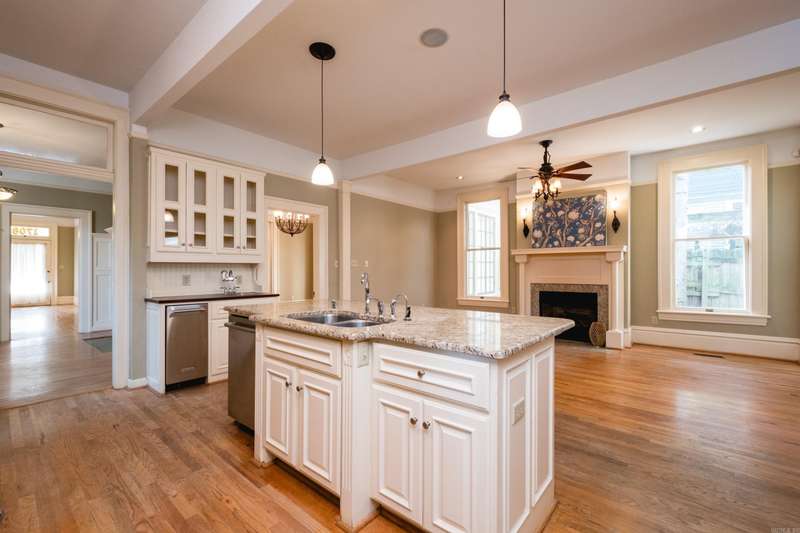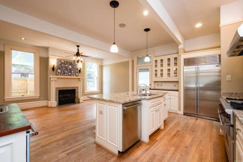 Located in the heart of Little Rock’s Governor's Mansion Historic District, this home blends classic southern charm with modern updates. A sweet front porch opens to a wide foyer with tall ceilings, handsome hardwood floors, and heavy pocket doors connecting the formal living and dining rooms. Freshly painted throughout, the main level also includes a sunroom, office with built-ins, convenient half bath, and a chef’s kitchen with abundant storage, Wolfe range, and open flow to the family room with fireplace. A huge vaulted screened deck overlooks a nicely landscaped yard and secure three car parking pad with wood gate and alley access. Laundry is just off the kitchen, with stairs leading to a basement ideal for storage. Upstairs, spacious light filled bedrooms share central baths, while the lovely primary suite features an updated bath, coffee bar, and second laundry area. This historic district location offers quaint surroundings and easy access to everything downtown as well as walking distance to SOMA. Come see!