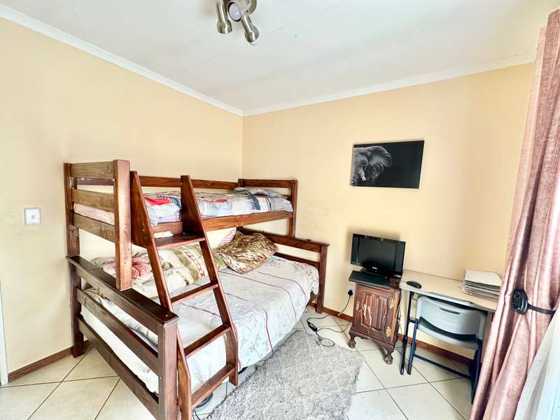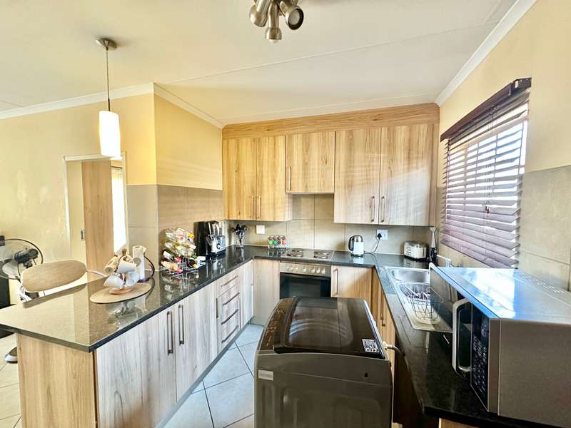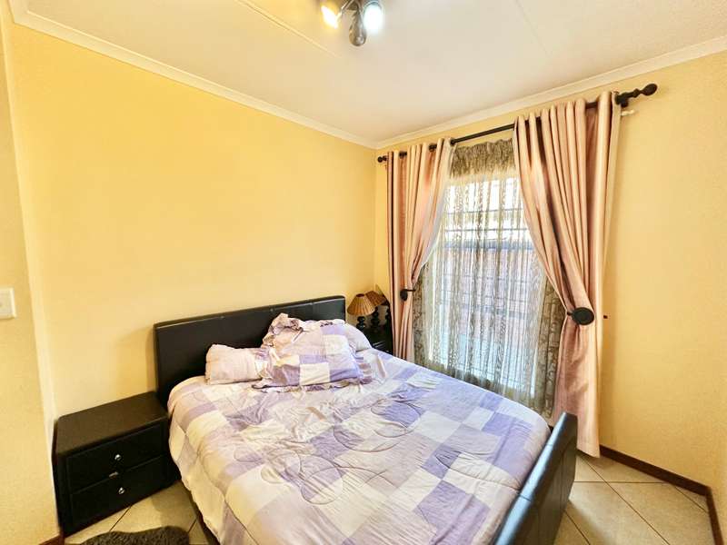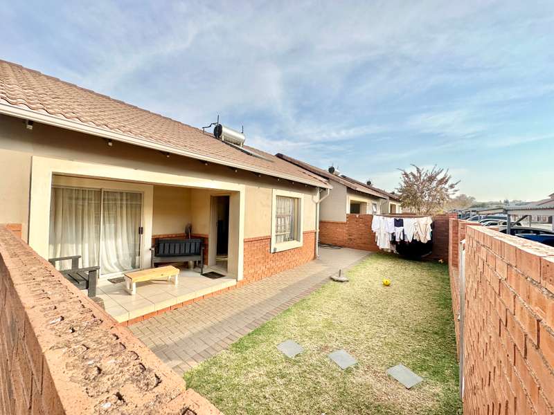 This Stunning Three Bedroom home offers Two full bathrooms a large living area with a dinning room exiting into a covered patio with a private garden, Further more this prepaid electricity property Offers ample parking space with braai areas and communal play area for kids Hurry and book a viewing