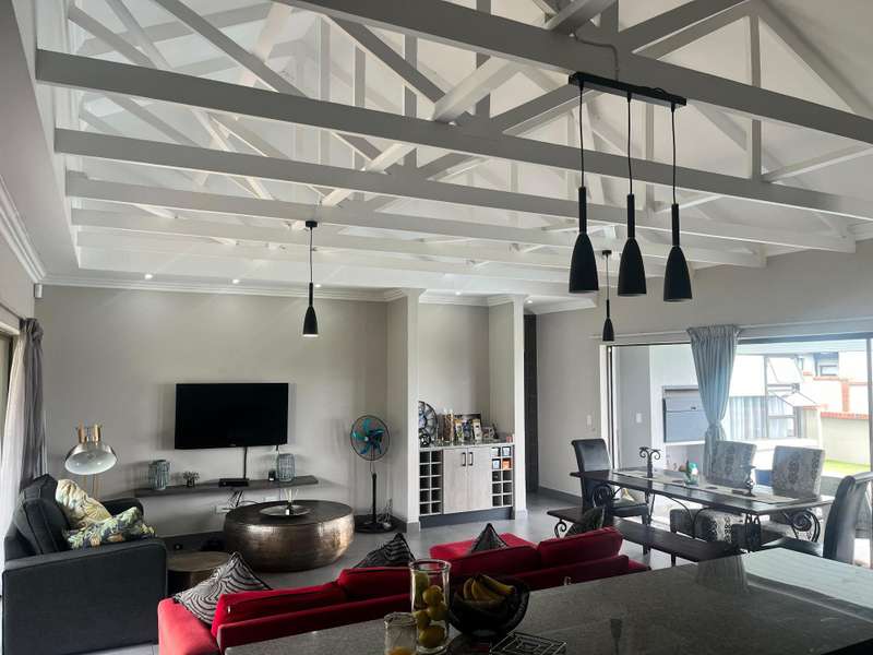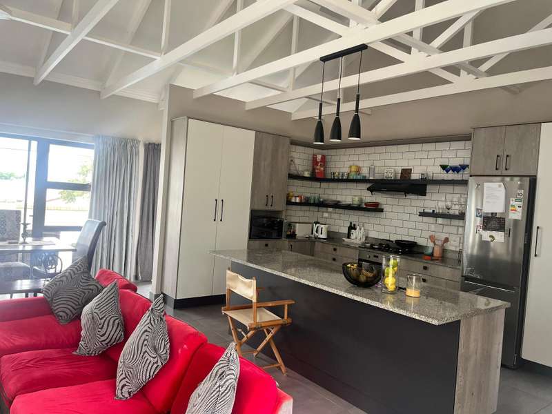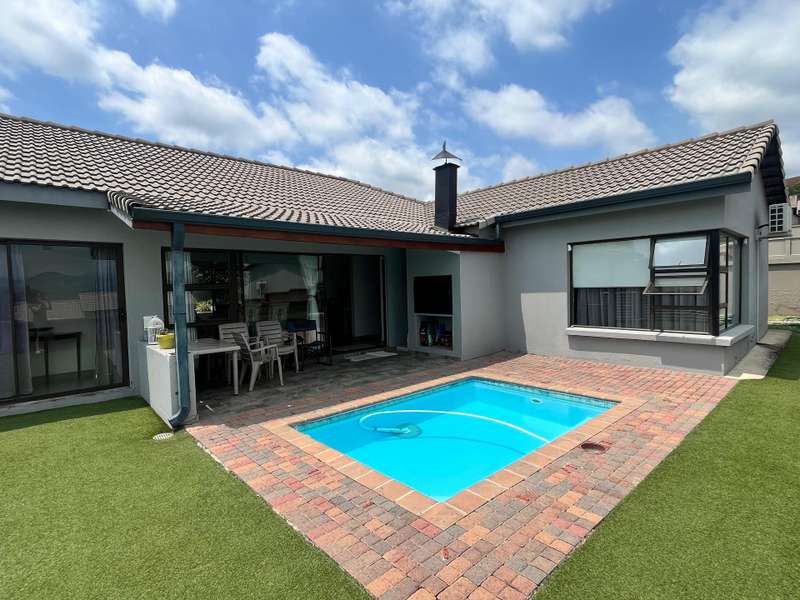 Discover this inviting home featuring an elegant living area that opens into a modern, open-plan kitchen. Enjoy outdoor living with a built-in braai, a sparkling pool and a porch that boasts stunning views, alongside a beautifully manicured, low-maintenance garden.