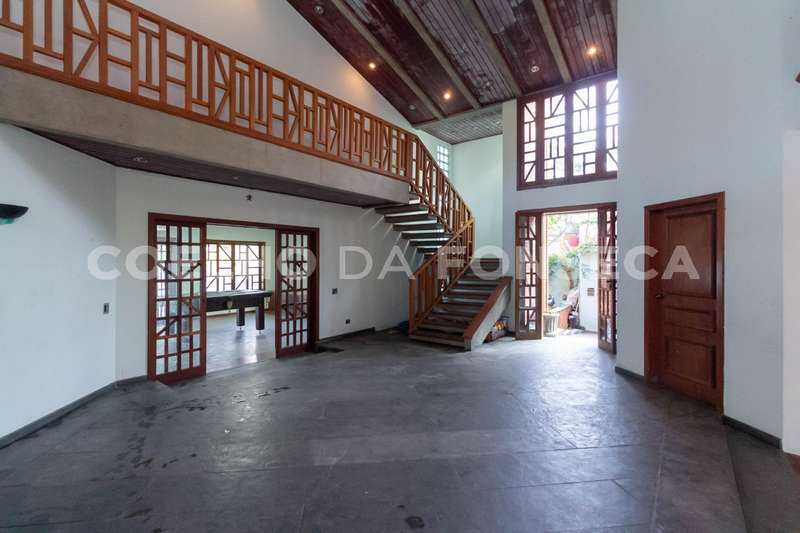 Casa Luxuosa com acabamento em madeira, pé direito duplo com jardim de inverno com quatro ambientes de sala. Na parte superior com 3 quartos com suíte, varandas, sala de tv e espaço para construção. Garagem para 4 carros cobertos e duas entradas. Imóvel com sauna com ducha, dependência de empregada e espaço verde além de árvores frutíferas e muito espaço com verde. Um imóvel único para quem busca localização para morar ou investimento. Um imóvel para quem não abre mão de liberdade e localização privilegiada.