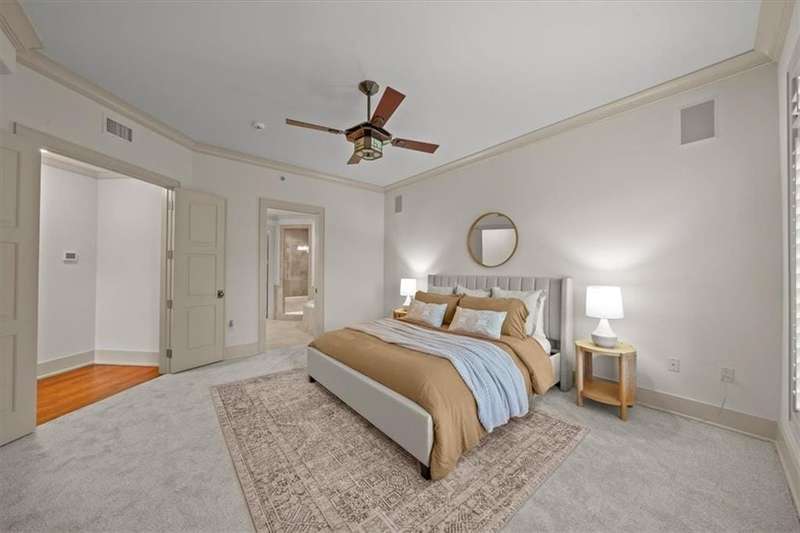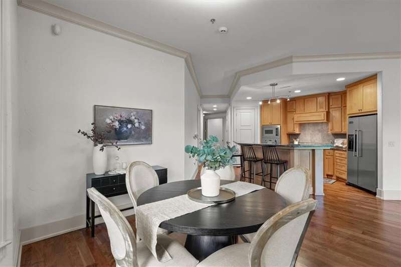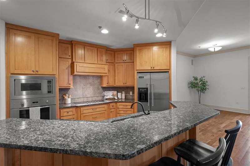 Experience sophisticated living in this stunning luxury condo featuring two bedrooms plus a dedicated office. Elegant hardwood floors pair beautifully with plush new carpet for a fresh, inviting feel. The fabulous chefs kitchen is designed to impress with high-end stainless steel appliances, sleek cabinetry, and generous counter space. The spacious primary suite includes a custom-designed walk-in closet that offers exceptional organization and style. Step outside to a beautiful balcony with views of the serene, tree-lined common areaperfect for morning coffee or evening relaxation. A rare opportunity to enjoy style, comfort, and convenience all in one home!