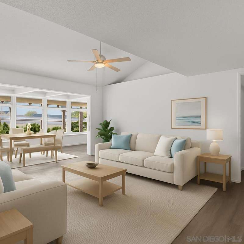SINGLE-STORY LIVING IN OCEANA 55+! This updated 2-bedroom, 2-bathroom home offers 1,170 sq. ft. of comfortable single-level living in the desirable Oceana community. The open floor plan features high ceilings, new vinyl flooring throughout (2021), and an enclosed lanai with walls of windows that create a bright additional living space--ideal as a sunroom, office, or hobby area. The kitchen was remodeled in 2008 with clean white cabinetry, and both bathrooms have been tastefully updated. Convenient indoor laundry with a stackable washer and dryer is included. Major upgrades provide peace of mind, including a new roof (2024), upgraded electrical subpanel (2009), tankless water heater (2007), and furnace/AC relocated to the attic (2007) for improved efficiency and storage space. A detached one-car garage with automatic door adds everyday convenience. Residents of Oceana enjoy a vibrant 55+ lifestyle with a pool, spa, clubhouse, and community events--all just minutes from shopping, dining, golf, and the beach. Move-in ready and low-maintenance, this home is perfect for easy coastal living!