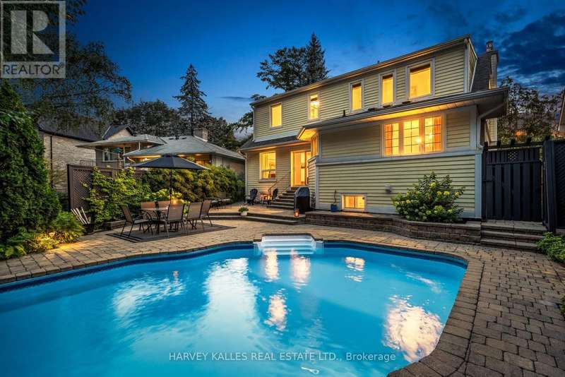Welcome to 17 Elstree Rd, a stunning home set on one of the most coveted & tranquil tree-lined streets in Humber Valley Village. With over 81 ft of frontage on a lush,mature lot,this residence combines timeless elegance w/modern comfort in a truly unbeatable location.Step onto the covered front porch & into a sun-filled foyer featuring custom closets & gleaming hrdwd flrs. The L/R offers a wall of windows overlooking the front gardens & a custom Rumford fireplace w/stone surround - perfect for both entertaining & quiet evenings. The formal D/R impresses w/hrdwd flrs, bespoke millwork, & a statement chandelier,all overlooking the priv backyard.The kit features hrwd flrs,stone counters & backsplash, 6 s/s appliances,abundant cabinetry,a breakfast area, & a w/o to the backyard oasis. A main-flr F/R completes the flow,offering a warm space to gather & relax.Upstairs, you'll find 3 spacious bdrms, incl a primary retreat w/a w-in closet, custom b/ins, & a spa-inspired 5pc ens w/garden views.The L/L expands the living space w/a generous rec room,gas fireplace,above-grade windows, & a dedicated guest br or office paired w/a nearby 3pc bath - ideal for a nanny or in-law suite. A bright laundry area,ample storage, & a cold rm add convenience & function.Outside,the inground salt water pool,landscaped gardens, & towering trees create a private sanctuary, complemented by a dbl-car garage & driveway prkg for four. This home represents an exceptional opportunity to live on one of the best streets in Humber Valley Village,surrounded by top-ranked schools,incl Humber Valley Village JMS, Richview Collegiate Institute & All Saints Catholic School.Walk to the newly renovated Humbertown Shopping Centre & James Gardens.Renowned golf clubs, incl St. George's Golf & Country Club,Islington Golf Club & Weston Golf Club,are nearby.W/quick access to the Bloor St Subway line, Pearson Int Airport,and major hwys, 17 Elstree Rd offers the perfect balance of serene family living & city convenience. (id:6370)