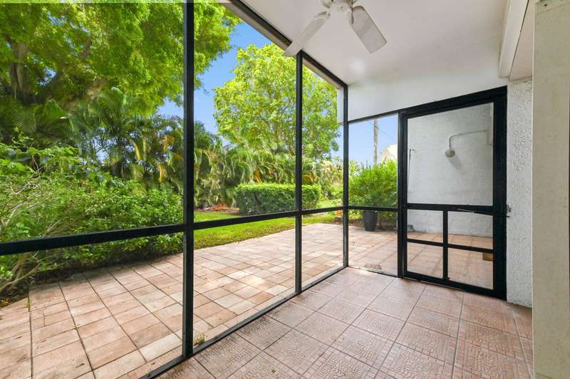 Welcome to townhouse 1-F in the Lands of the President known as the best kept secret in Florida for its prime location in the heart of bustling WPB, 3.5 miles to beaches & PB Island, close to PBI airport & Tanger Outlet Mall with Whole Foods, Marshall's, Saks of Fifth, + across the str. This 3 BR, 3 Bath townhouse is an end unit & the largest lot in the community. The entry to your home is a serene private courtyard and you walk into a 10 FT plus loft LR. Make dinner in the updated open kitchen w/ newer stainless steel appliances and enjoy it on your private patio or wake up & have coffee/tea on your screened terrace overlooking the Dutchman's Pipe golf course. Coming in at 1862 SF this unit has a spacious layout with a ton of light. The 2car carport gives easy access to unload groceries