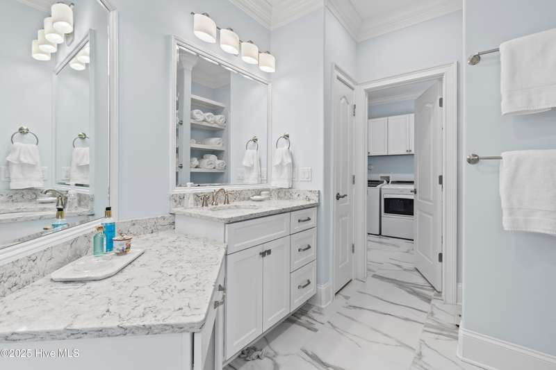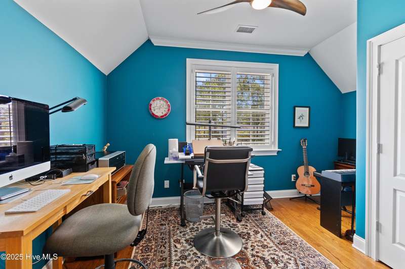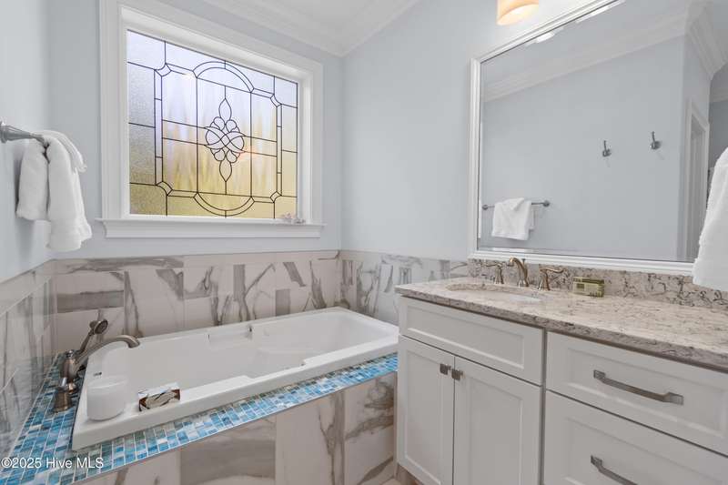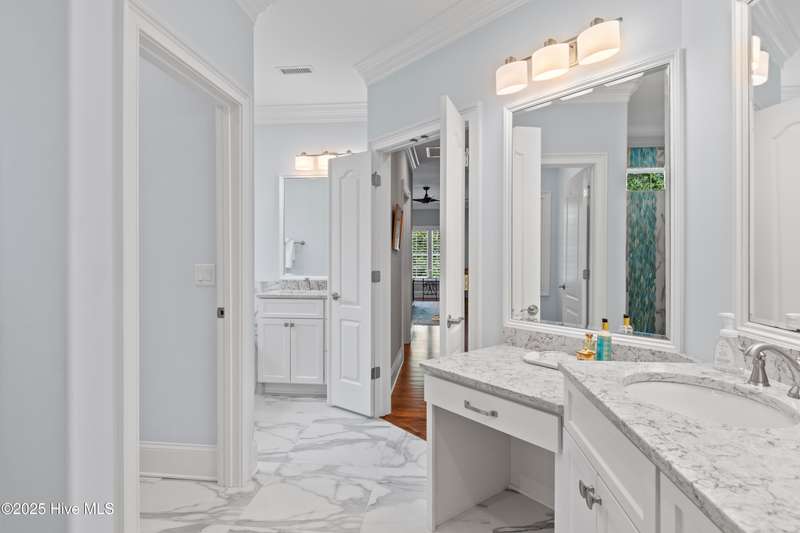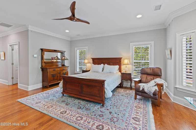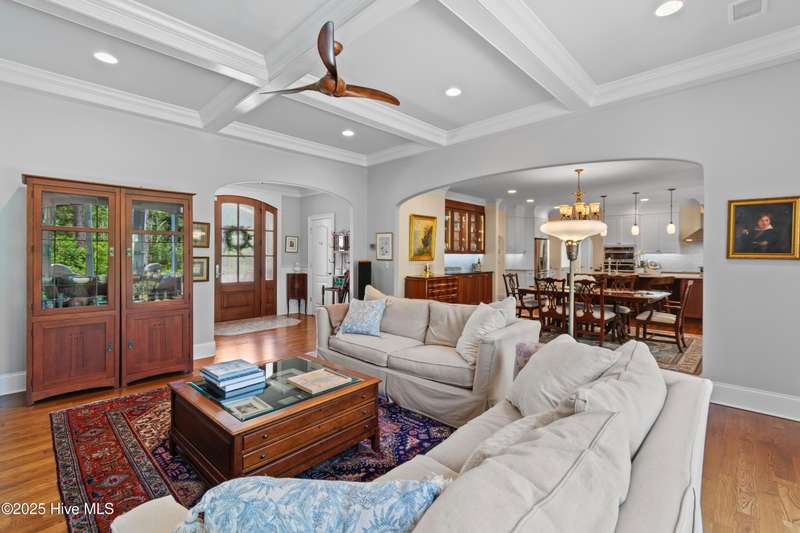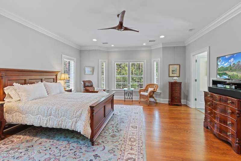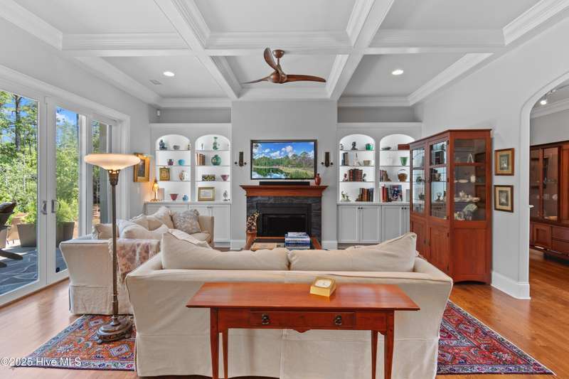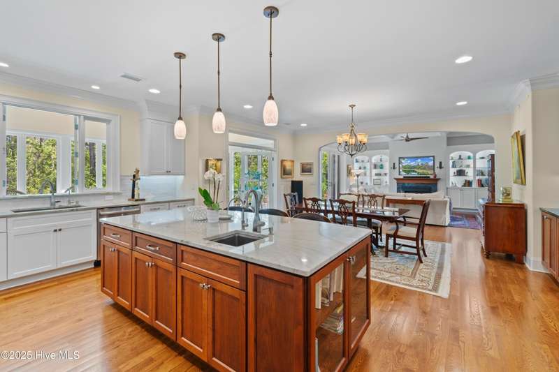 Timless custom finishings meet modern efficiency at 2555 Parkridge Drive. A true custom-crafted showpiece nestled in the coveted Woodlands Park neighborhood of St. James Plantation. This thoughtfully designed home blends timeless style, luxurious comfort, and cutting-edge energy efficiency for a lifestyle of ease and refinement. Step onto the welcoming bluestone front porch and into a sunlit, open-concept split floor plan—perfectly tailored for both everyday living and elegant entertaining. To the right, two guest bedrooms are connected by a true Jack & Jill bath, with one room offering ideal space for a home office or flex room. At the heart of the home, the great room impresses with a gas fireplace flanked by custom built-ins, flowing seamlessly into a dining area featuring a beautiful built-in sideboard for stylish storage and display. Throughout the living areas, rich hardwood flooring enhances the sense of quality and craftsmanship. The gourmet kitchen is a dream for chefs and entertainers alike, boasting high-efficiency appliances including an Advantium oven/microwave combo, convection oven, and induction cooktop. Custom cabinetry, a striking natural quartzite island, and reverse osmosis water at both sink and fridge elevate everyday living. A 275-bottle walk-in wine room and large walk-in pantry round out the space with flair and functionality. Unwind year-round in the vaulted, skylit sunroom, complete with a pass-through window for effortless entertaining or casual connection. Storage is abundant and thoughtfully designed: dual his-and-hers walk-in closets, an additional back hall walk-in, two conditioned walk-in storage rooms upstairs, and a massive walk-in attic. The upstairs bonus room with full bath offers flexible space for guests, hobbies, or a private retreat. The oversized two-car garage includes even more storage and houses the solar panel system with integrated battery backup, providing substantial energy savings and peace of mind during outages. Outdoors, enjoy a meticulously maintained front yard and a private, low-maintenance backyard oasis, complete with a bluestone patio and path that winds through the trees to the edge of serene nature preserve. Don't miss this rare opportunity to own a custom home of this caliber in one of the area's most desirable communities. Schedule your private tour today and discover the unmatched lifestyle of St. James Plantation.