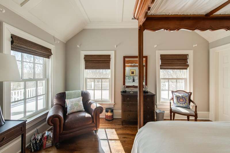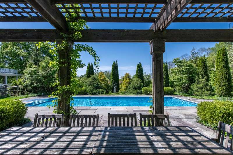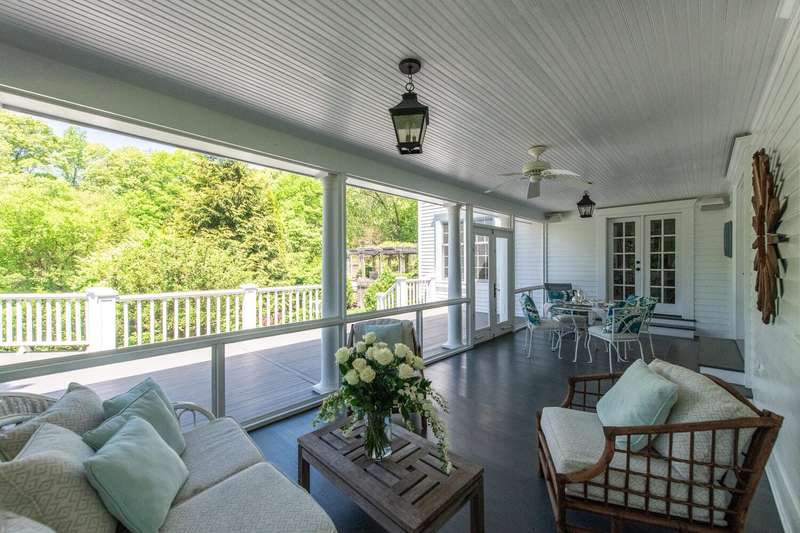 This magnificent Modern Farmhouse, sheltered in an elegant landscape of rolling hills, mature trees, colorful gardens and a 7-acre lake, is the quintessential Hudson Valley retreat on 43+ picturesque acres. Located an easy five minutes from historic, cultural-rich Rhinebeck Village, its the country destination for the sophisticated buyer who values privacy, property and proximity. The striking 2005 home by award-winning architects Brooks & Falotico, has been meticulously refreshed and re-imagined with exceptional materials and every luxury amenity.From canoeing and ice skating on the lake to hiking scenic trails, luxuriating in the 20' x 40' pool (with subtle accent lighting for night swims) or tending to the flowering plants, this extraordinary property provides four seasons of pleasures and pursuits for family and guests.Seamlessly blending indoor and outdoor living, the 6,050-square-foot, 5-bedroom main house is thoughtfully designed with an abundance of airy spaces for entertaining, culminating in a showstopping wraparound porch (with brand-new Aeratis Heritage decking) thats topped with a stunning covered sun porch. Inviting architectural details--including classic crown molding, rich hardwood and radiant-heated polished stone floors, wine cellar, custom built-ins, and plush window seatscreate an interior atmosphere of warmth, comfort, and refinement.The impeccably appointed open-concept kitchen features Carrara Marble countertops, a generous butlers pantry with an authentic antique home vibe, and premier appliances from Thermador, Miele, and Sub-Zero. This crowd favorite gathering space conveniently spills into a sunny breakfast room, warmed by a fireplace. Maximizing versatility, a handsome office with views of the terrace, a walk-in cedar closet and a stylishly renovated full bath, can easily be converted into a first-floor bedroom if desired. Anchoring the main level is a sprawling sunroom sanctuary, with radiant-heated stone floors, walls of windows, built-in bookshelves and French doors to an expansive patio.Upstairs, the luxurious primary suite boasts a barrel-vaulted coffered ceiling and access to a private balcony that promises morning coffee in peace and quiet. Another favorite multi-use space, dedicated to wellness, is the gym/yoga/Pilates studio above the three-car garage.Tucked down a long, idyllic driveway flanked by impeccably maintained crabapple trees, this enchanting property continuously surprises with its timeless elements: a traditional cedar pergola embellished with fragrant wisteria, a whimsical treehouse, rambling stone walls, and meandering bluestone paths. Discover one of Rhinebecks most coveted addresses: enviably close to Rhinebeck Village and ten minutes from Amtrak and the Taconic State Parkway.
