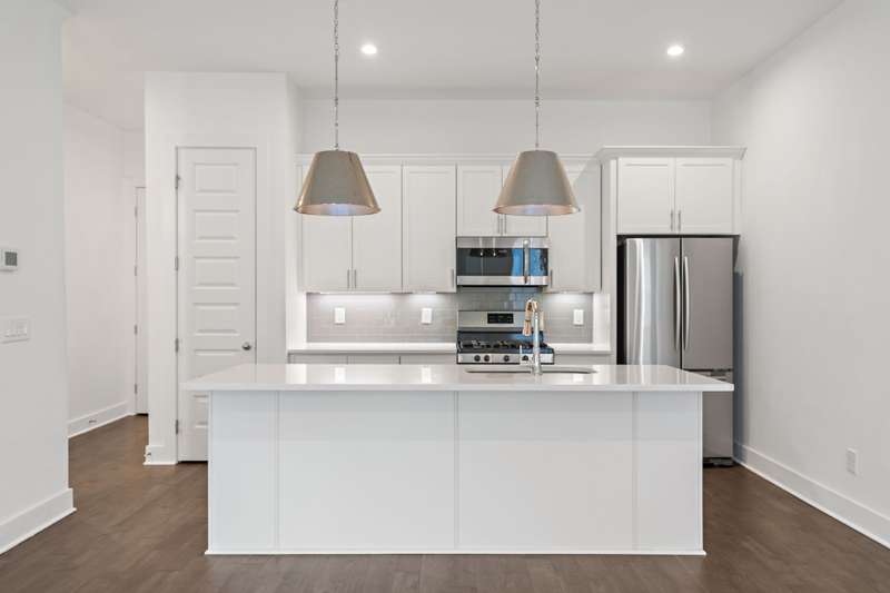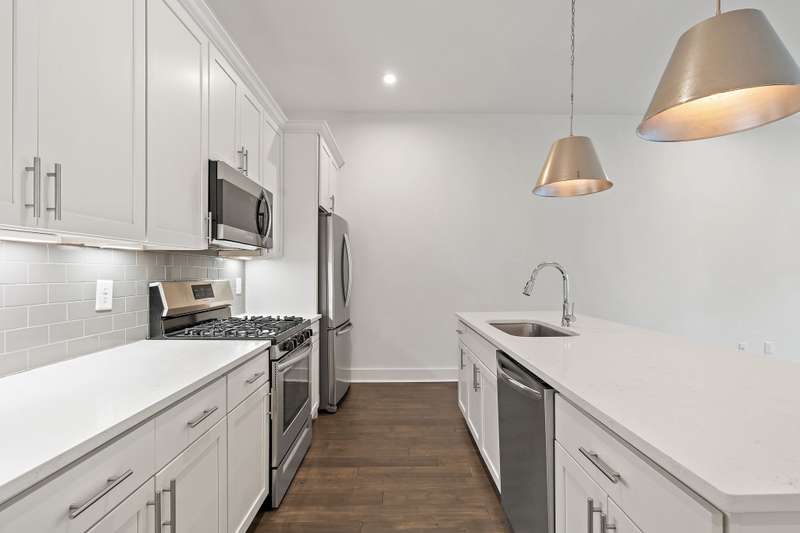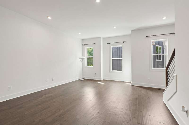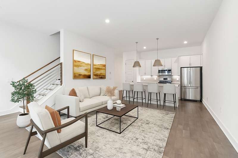 Spacious main level with abundant natural light, hardwoods throughout--no concrete floors like some other units! The well-appointed kitchen features quartz countertops & stainless steel appliances.