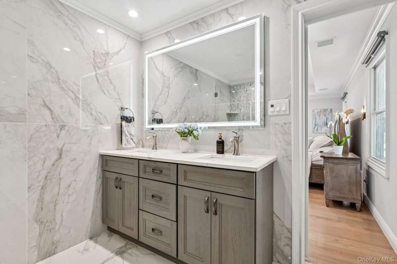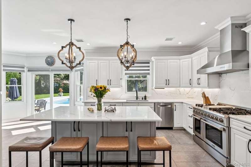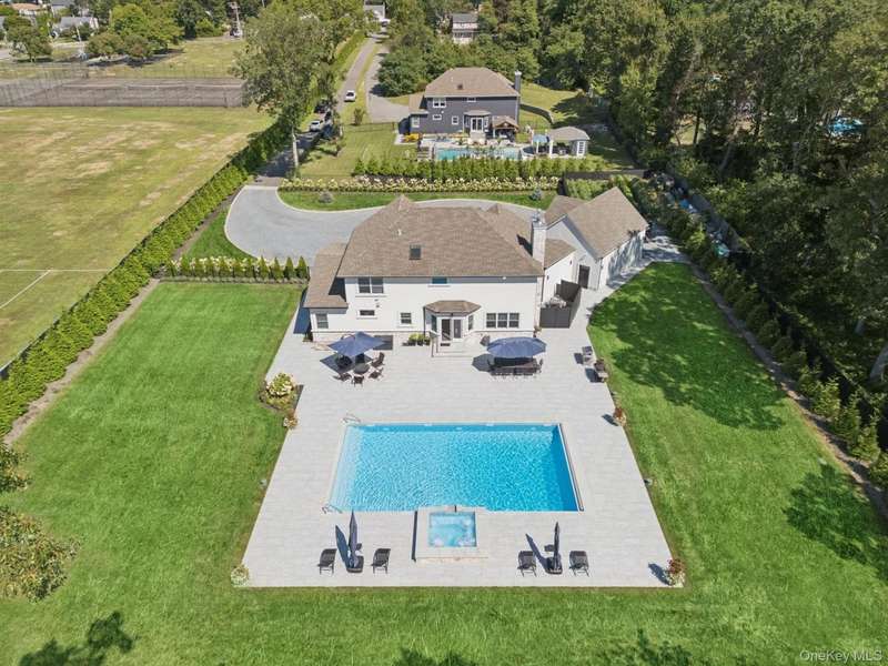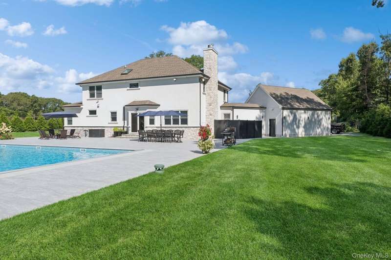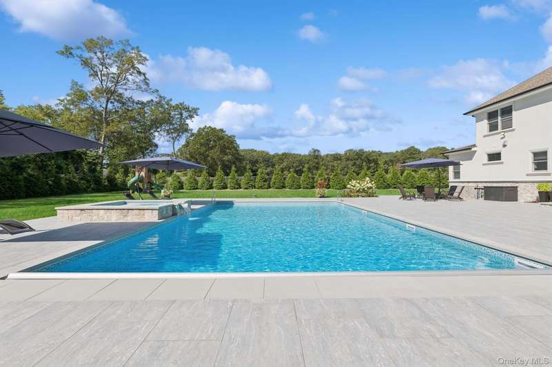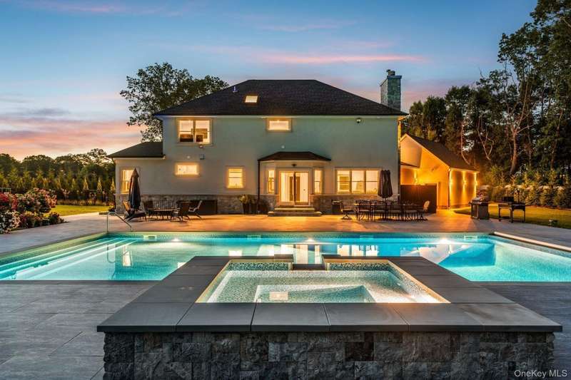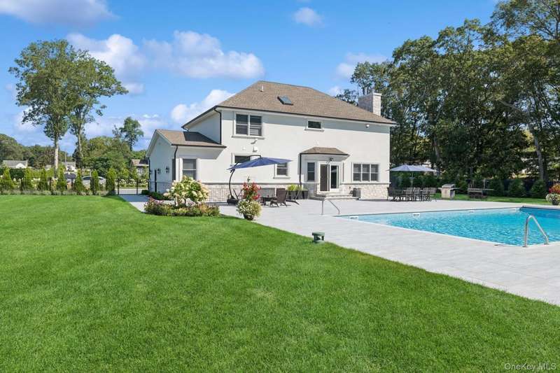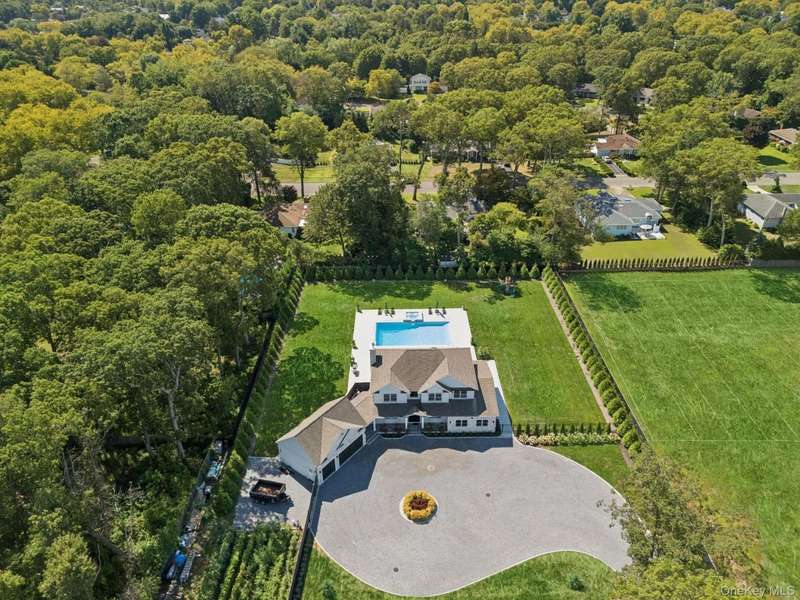 Luxurious newly built custom Colonial on 1.3 acres offers the scale and presence of a true East Northport estate. A long and private drive takes you into a Center Island courtyard and leads you into a three + garage and a welcoming Impressive front approach, with potential unfinished loft over garage for more living space. Wrapped in Stucco and Travertine stone siding. Enter in a double wrought Iron custom doors, soaring ceilings and oversized windows fill the home with light. Chef's Kitchen with a 48 six-burner range, state of the art appliances, Quartz island and custom White cabinetry flows into the family room with natural wood-burning fireplace.The main level features a bedroom suite and full bath for guests or multi-generational living, a large bonus room and access to a full unfinished basement with outside entrance. Central vacuum system provides modern convenience throughout.Upstairs, bedrooms are generously proportioned with walk-in closets, while bathrooms offer spa-quality finishes with floor- to-ceiling designer 3D tile. Second floor full laundry room adds everyday ease.Step out into a backyard designed for resort living, with a natural gas heated saltwater pool, spillover spa, and porcelain decking that stays cool underfoot. Natural gas BBQ, Surround sound Bose speakers, Expansive flat lawns, manicured landscaping surrounded by giant evergreens each with there own water source right down to the drive way entrance for a possible water feature and electric for entry gates. Thoughtful planning on this unparalleled residence right down to an amazing Organic vegetable garden complete the estate.