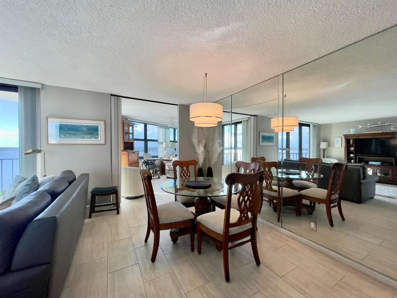 Spectacular views from this beautiful updated, fully furnished beachfront condo. Two bedroom, two bath 10th floor unit with two balconies. Light & bright Great room offers access to a covered balcony with direct intracoastal views and a balcony with ocean/beach views. Large Primary with king size bed and 2 sets of Bunk beds in guest room. Additional Den/Office. New Additional Queen sofa sleeper. Impact glass throughout. Prime covered parking. Connemara offers a beautiful heated pool, tennis courts, Pickleball, fitness room, grill area and a beautiful beach to stroll, swim and soak up the sunshine! 15 minutes to the airport & downtown West Palm beach. Terrific condo, perfect location to spend the season