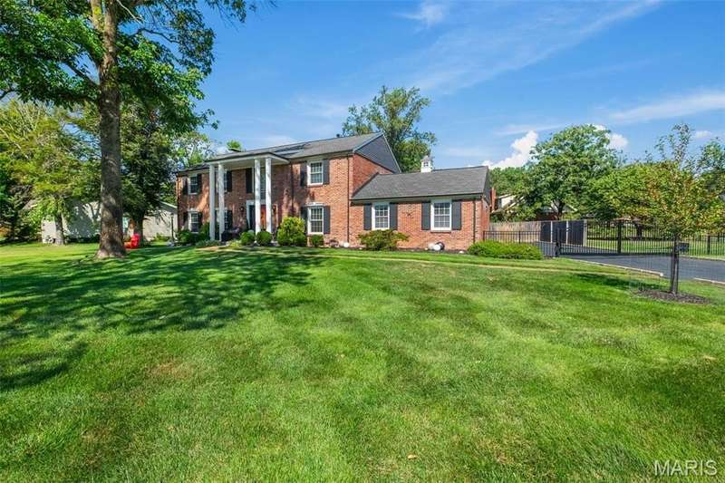 Welcome to 14009 Ladue Rd, a stunning full-brick colonial on a premier half-acre lot in Chesterfield, beautifully maintained and extensively updated with nearly $200,000 in recent improvements. Step inside to a gracious two-story foyer, gleaming hardwood floors, and detailed crown molding that set the tone for this elegant home. The gourmet kitchen shines with freshly refinished cabinetry, granite counters, and newer stainless appliances, opening to a warm family room with fireplace and seamless access to the backyard for effortless entertaining. The spacious primary suite offers an upgraded bath, custom closet, and new high-efficiency windows, while additional bedrooms provide comfort and flexibility. A newlypartially-finished lower level adds exceptional living space with a recreation room, fitness area, and workshop. Notable upgrades include a new roof, siding, and gutters (2025), extensive fencing with WiFi controlled driveway gate, enhanced landscaping, patio with pergola and firepit, updated baths, custom flooring. Impeccably cared for and thoughtfully modernized, this home blends timeless colonial charm with today’s most desired amenities—truly move-in ready and designed to impress. Perfectly located near top schools, shopping, and highways, this home blends colonial charm with modern convenience — move-in ready and designed to impress. A Must See!