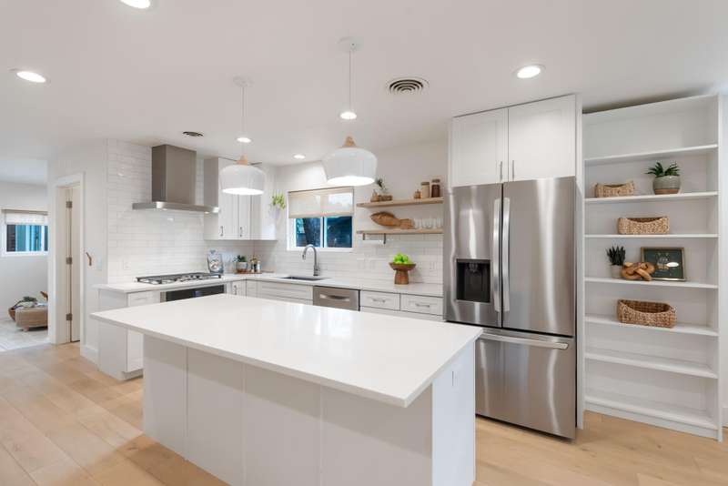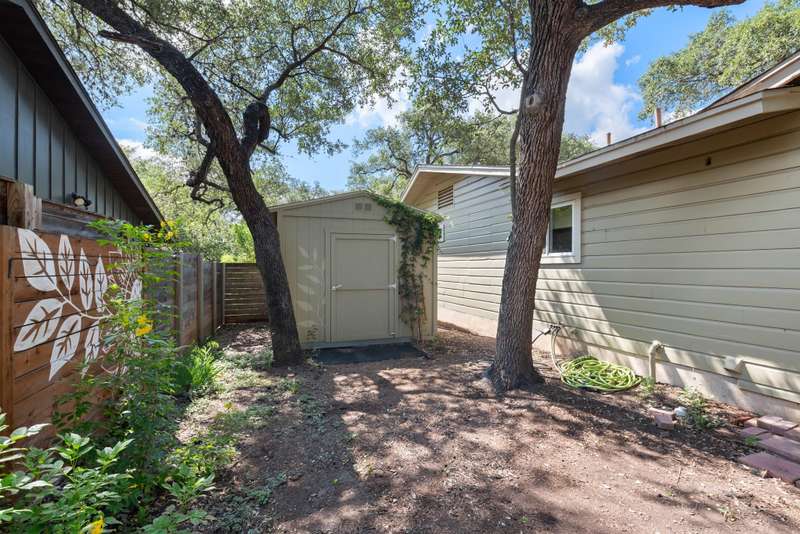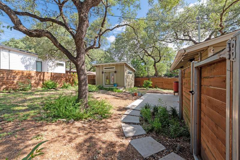 Thoughtful 2019+ renovation features new windows, timeless light oak hardwood floors, quality choices made in wood products, Eco/no VOC paint inside the whole interior, Quartz countertops & wood cabinets, stainless appliances (refrigerator with ice/water in door conveys). Just a few exterior highlights include: All central texas native plants, 200 sq ft art studio with great light, New storage shed, oversized corner lot, so peaceful and quiet. Tons of shade in the hot summers.