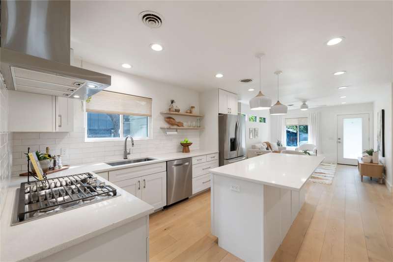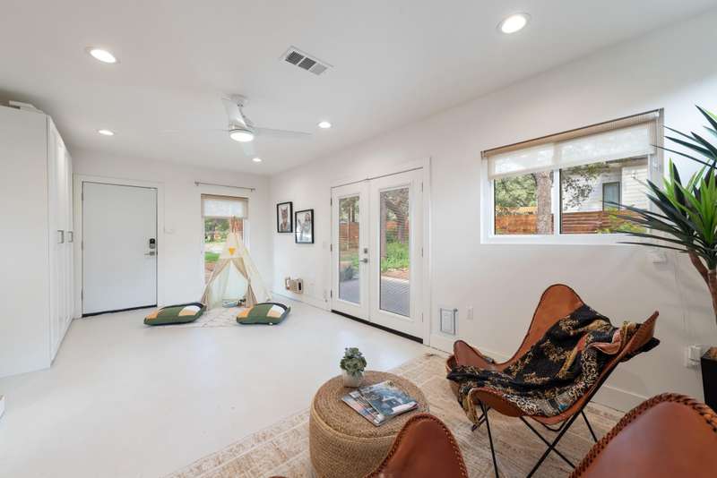 Two living rooms (three counting studio) create endless flexibility for lifestyle, hobbies, WFHome, HVAC space for multiple Yogis, etc. Even though there is an EV charger, ditch the car and stroll down the sidewalk past little-known Tom Lasseter pocket park on your way to endless South Lamar staples & hotspots. Much of the best CenTex food & drink is steps from the front door, Central Market south is 1.9 miles away, all feeding to Zilker Elementary & Austin HS.