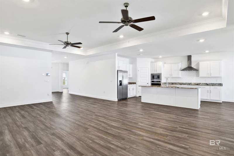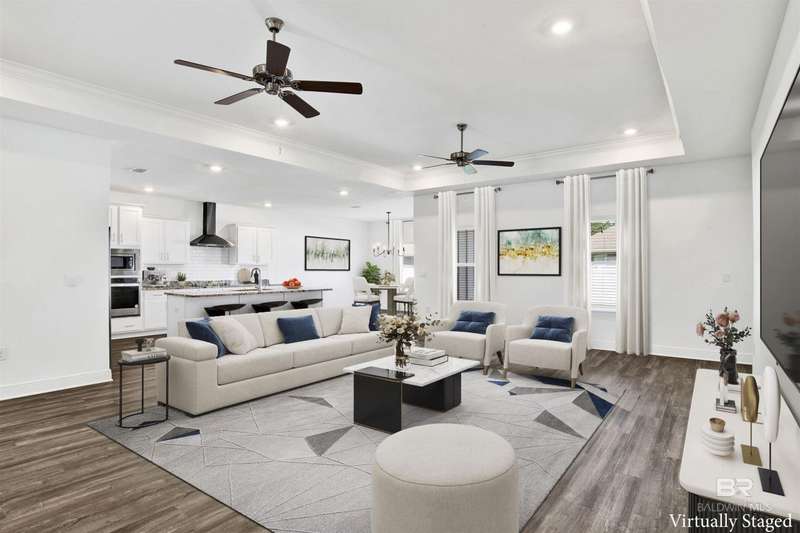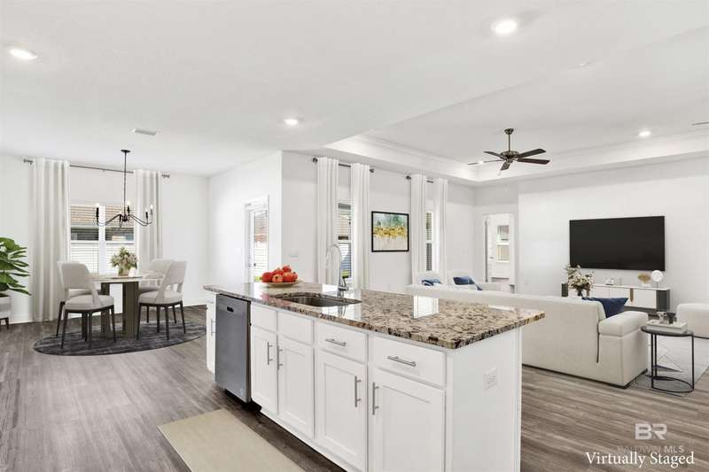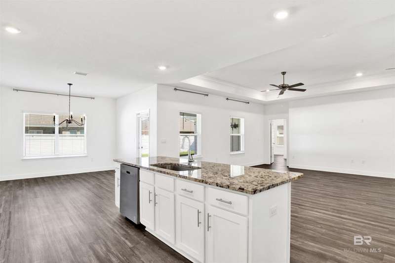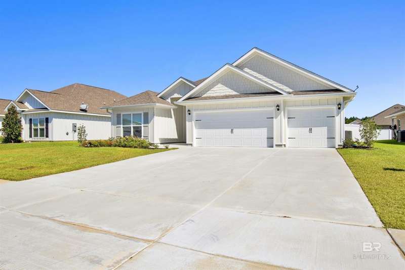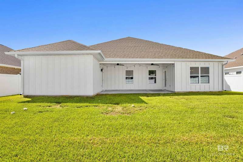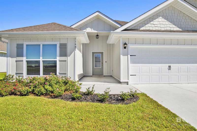 Welcome to your next chapter in Jubilee Farms! This barely-lived-in Hawthorne plan offers 2,486 square feet of open-concept living with upgrades throughout. The gourmet kitchen is the heart of the home, featuring quartz countertops, stainless steel appliances, a chef's hood, and a functional layout perfect for entertaining. Luxury vinyl plank flooring is featured throughout the main areas, adding durability and a modern appeal. The split-bedroom design offers privacy, featuring a spacious primary suite with a spa-like bath and walk-in closet, as well as a secondary suite with a full bath and walk-in closet. The home has a fully fenced backyard, gutters, and several custom details and new lighting. Enjoy resort-style amenities including a large pool, a separate adults-only pool, water slide, splash pad, gym, yoga room, fire pit, grill area, playground, parks, fishing ponds, clubhouse, and more, all within one of Daphne's largest neighborhoods. Why wait for new construction when this nearly new home is move-in ready and full of style, comfort, and convenience? Jubilee Farms is minutes from schools, shopping, I-10, and the Bayfront. Buyer to verify all information during due diligence.