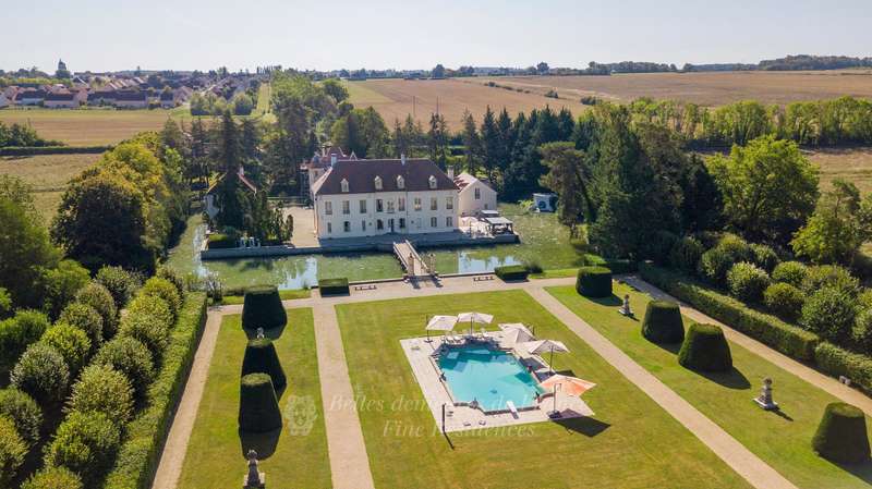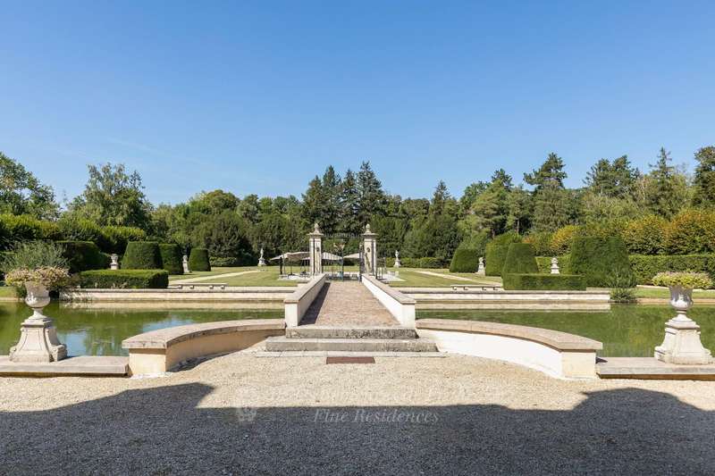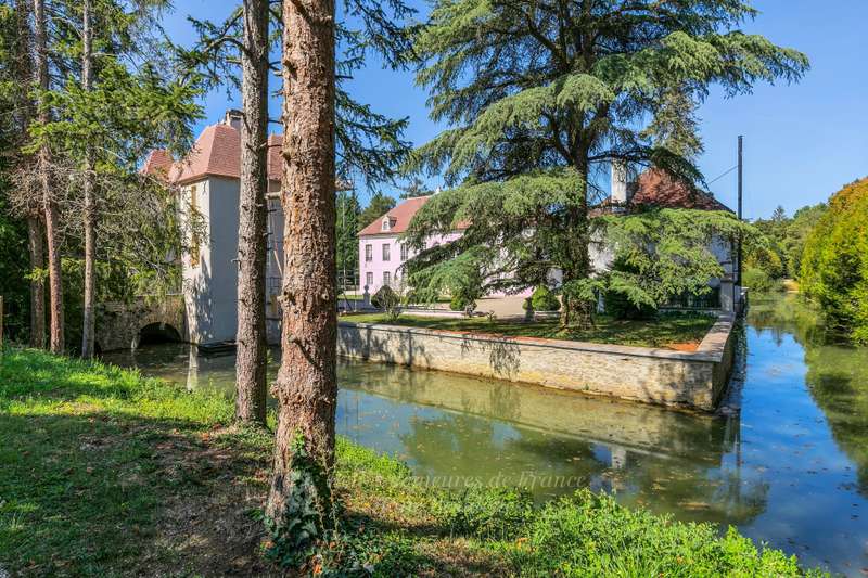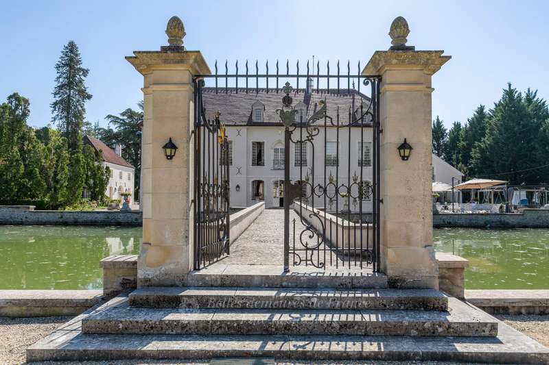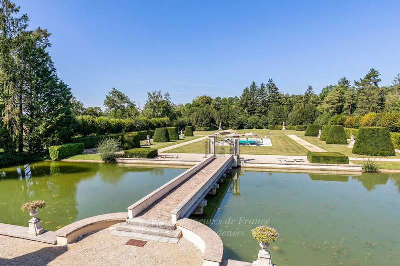 Near Auxerre. A long bridle path leads to this exceptional period property dating from the 16th century and remodelled in the 18th century. Comprising four main buildings, it is set in peaceful extensive grounds with French formal gardens, woodland, streams and ponds. Featuring vestiges of the drawbridge and protected by a wrought-iron grille, the entrance porch has resisted the passing centuries and accesses an elegant central courtyard with three buildings bordering the moats. The four buildings have been recently restored and are in perfect condition. Superb living and reception rooms and bedrooms with private bathrooms command magnificent views. To the rear of the courtyard, the formal gardens are accessed by means of a stone bridge also featuring a superb wrought-iron grille. A central period water feature has been transformed into a swimming pool. A little consecrated chapel is on the edge of the woods which boast centennial trees, as do the gardens which also feature an orchard and a vegetable garden. Two caretaker’s lodges at the entrance to the property have been converted into 3 dwellings. Each benefit from privacy and open onto gardens distinctly separate from the main building. Other annexes include a building with 8 garages, as well as a function room featuring soaring ceilings. The ensemble is perfectly maintained. 50-page file with photos, technical details and further information by request.