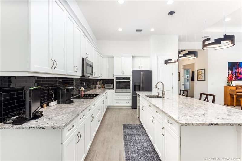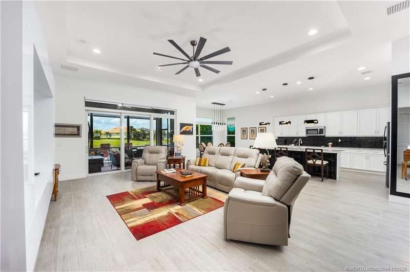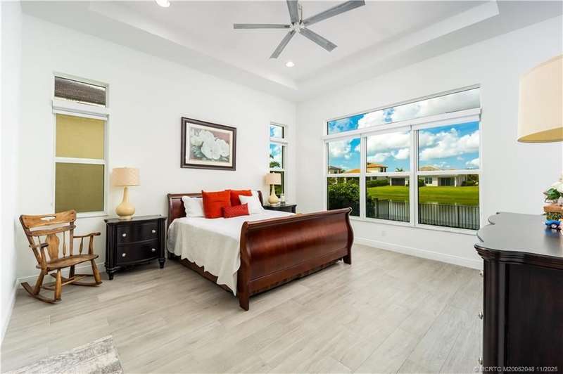 LAKE V??EW??!! Thi?? d?????r?bl? Dulce floor plan in PG?? Ver?no offers 3 bedrooms plus den, 3.5 baths, and 2,563 sq. ft. of living space, with each bedroom featuring an en-suite. Over $160K in upgrades include impact windows and doors, quartz countertops, porcelain wood-look tile, custom lighting, recessed lighting in every room, motorized shades, and (8) 72 fans. The office is custom built with a 12-ft quartz desktop and 24 shelves. A custom entertainment cabinet with six large compartments adds style and function. The kitchen boasts a custom backsplash, upgraded appliances, and island tile, while baths feature elegant mirrors and crown moldings. Expanded pavers, screened patio with sunscreens, new fence, and lake views create inviting outdoor living. An oversized 22' x 31' 3-car garage and Speed Queen washer/dryer add convenience. PGA Verano offers resort-style amenities-fitness, pools, tennis, pickleball, social events-with optional PGA Golf Club memberships and golf cart paths.