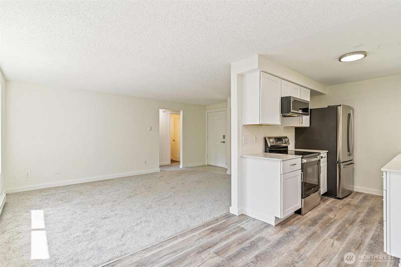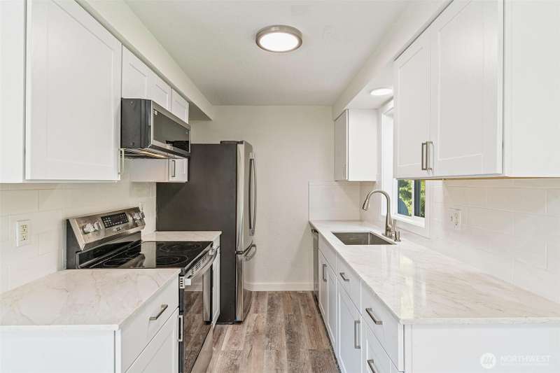 Back on the market due to buyer's financing! Incredible opportunity! Turn-key and beautifully updated, this top-level corner unit in Lake Stevens offers modern comfort and convenience. With two bedrooms and one bathroom, this home features brand new carpet and luxury vinyl plank flooring, a fully remodeled kitchen with quartz countertops, new cabinets, and stainless-steel appliances. The dining area flows seamlessly into the living space, while the bathroom stuns with sleek finishes, quartz countertops and a modern tile shower. Enjoy the privacy of a top-floor unit in a well-maintained community. Just minutes from shops, dining, parks, and transportation — everything has been done for you. Don’t miss this move-in-ready gem!