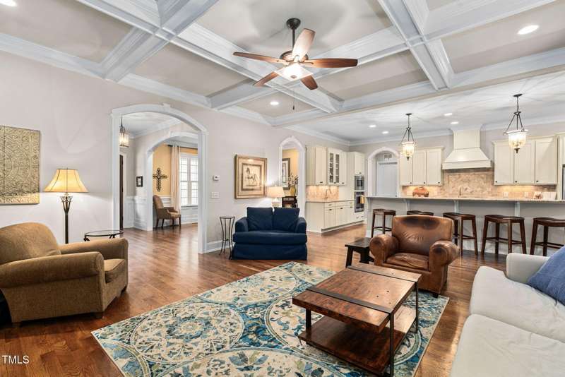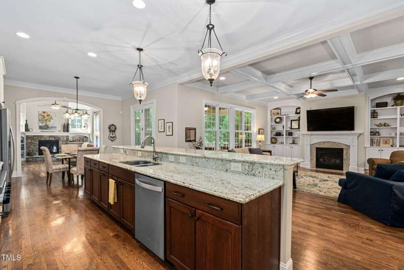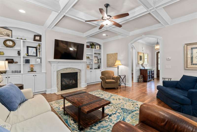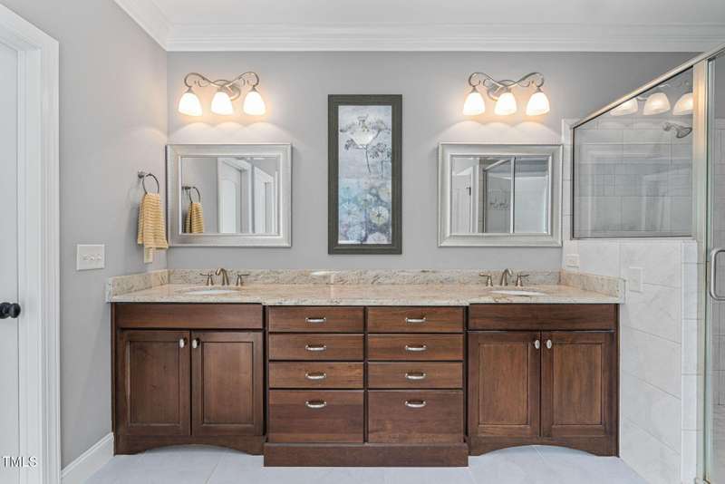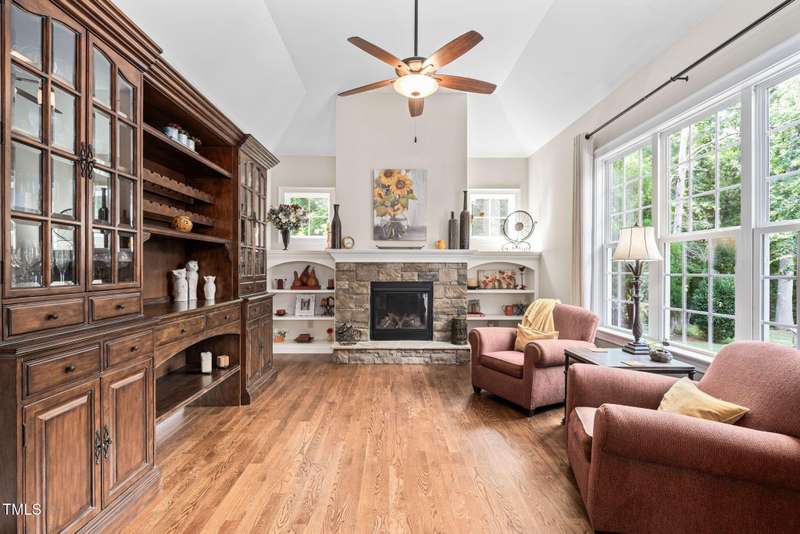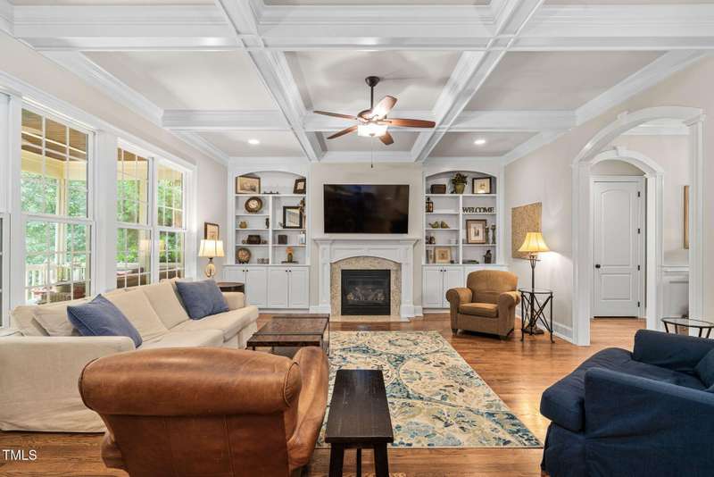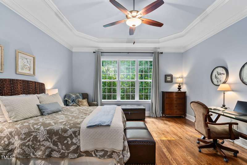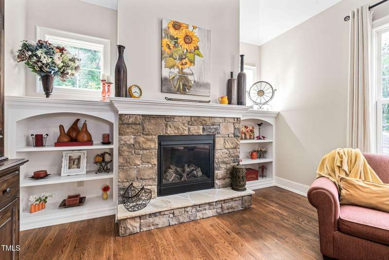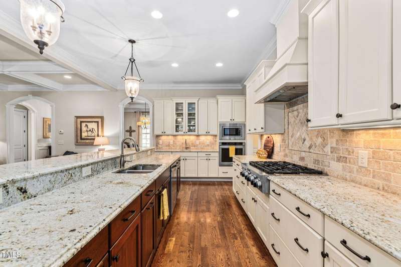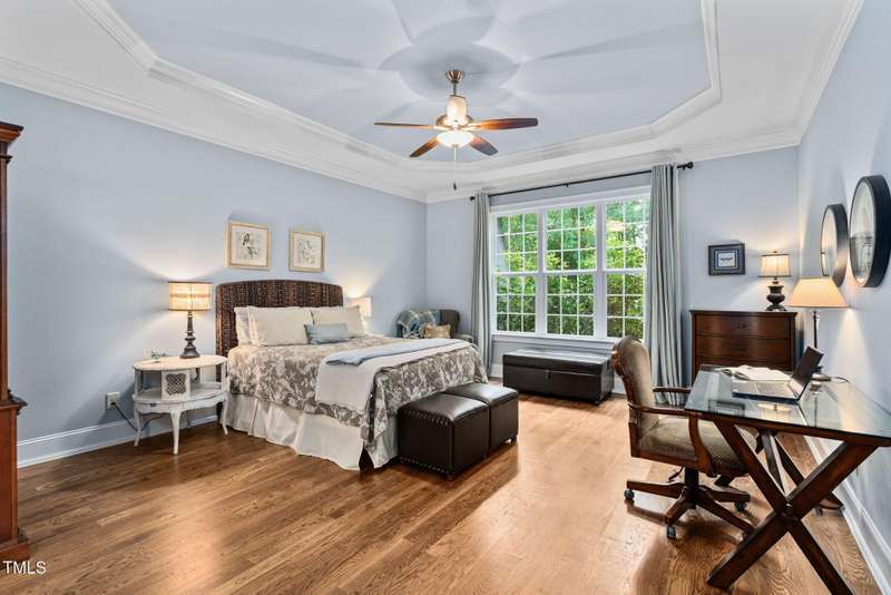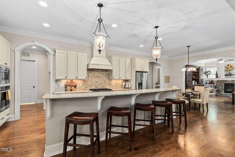 Knock out your wish list with this trophy property. Multi-generational living with TWO primary bedrooms & TWO laundry rooms. Great curb appeal - a gorgeous exterior that is truly swoon worthy. The interior is drenched in vogue finishes. This custom property lives large & encompasses 5 spacious bedrooms, 5 baths, 3 fireplaces, Chef's kitchen, family room, gorgeous hearth room, formal dining room, drop zone, & a bonus room - plenty of room for entertaining, sleep, study, storage and stellar versatility. You are greeted with a double door entry & a grand foyer, gleaming hardwoods, superior mill work & finishes, arched doorways & lofty ceilings that lend an open and airy feel throughout. Coveted primary on main level (one of two): Oversized with a tray ceiling, walk in closet, hardwoods & private views of the lush backyard. The heart of this home will be the Chef's kitchen that is well appointed with a gas cooktop, two sinks, beautiful pendants, an oversized island, under cabinet lighting, a Costco worthy walk-in pantry - this area becomes your gathering place. Hearth room is flanked with a stacked stone gas fireplace, built-ins, hardwoods and a soaring ceiling. 2nd primary BR has two walk-in closets, a luxe spa with a standalone soaking tub, walk-in shower w/custom tile and dual vanities. Add 3 more bedrooms. a bonus room & another wash/dry zone. This home is wrapped in windows that gives such a sense of tranquility. Coffee in the morning, tea in the afternoon or cocktails in the evening - you will never want to leave your screened in porch and/or stacked stone outdoor fireplace. Backyard entertaining area is super-sized with lush greenery, diverse plantings, stone patio & charming accents that elevate the space into a captivating and relaxing retreat. Massive walk-in floored storage areas. Double bay extended garage with room for a workshop or gym. Third floor can be finished. Enviable lifestyle with a community pool / play area and a location that is close to everything you may need or want. Welcome Home!