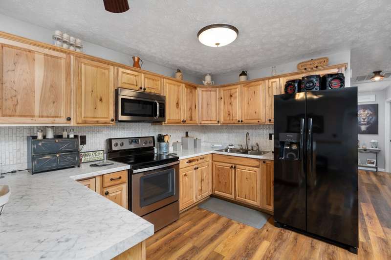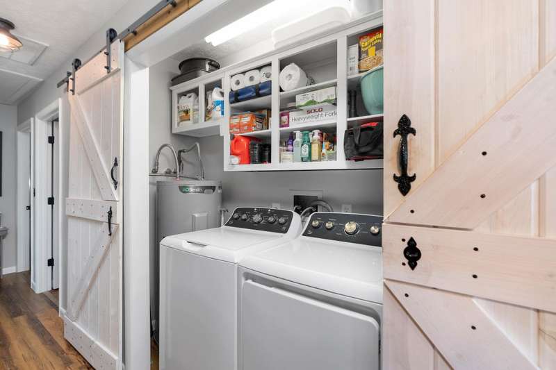Meticulously cared for Belaire GEM!!! CLEAN is an understatement! PRISTINELY cared for home! Every home buyer's dream to move right in to such a well maintained property! Beautifully updated and designed. The list of upgrades is astounding including these but so many more within last 5 years-Metal roof, laminate floors, crawl space encapsulation, Heat Pump and Ac, resurfaced hardwood floors, Dutchway installed privacy fencing, new windows, new siding AND tastefully remodeled HIGHEND bath and kitchen! Bath with tiled walk-in shower and exquisite glass doors. Lovely barn doors hide the laundry area. Private fenced back lawn with carport and LARGE building with electric. Paved Drive and Professionally installed landscaping pavers. A swoon worthy lawn and landscaping too! See it TODAY!!