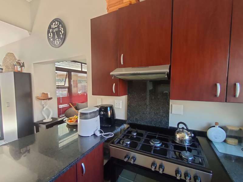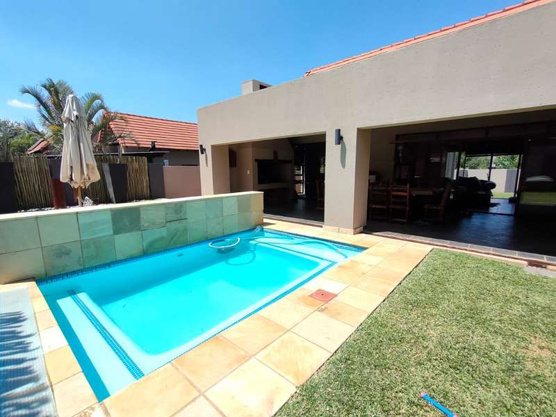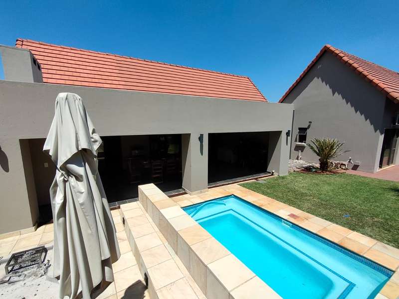 This exquisite 3-bedroom, 2-bathroom home, complete with an ensuite and a nanny room, offers a perfect blend of comfort and luxury. As you step inside, you'll be greeted by a warm and inviting atmosphere, with each bedroom featuring sliding doors that open up to the expansive backyard. The outdoor space is a true oasis, boasting a crystal clear swimming pool, a charming patio, and a well-equipped braai area, ideal for hosting gatherings or simply enjoying the serene surroundings. The single-storey layout of the house enhances the sense of space and flow, with a cozy open plan kitchen that includes a 5-burner gas stove, perfect for whipping up culinary delights. The kitchen seamlessly transitions into a spacious sitting area, creating a harmonious living space that is perfect for relaxation and entertainment. Additionally, a bar area adds a touch of sophistication and provides the perfect spot for unwinding with friends and family. Parking will never be an issue with the ample parking space available, including an automated double door garage for added convenience and security. Contact us to view.