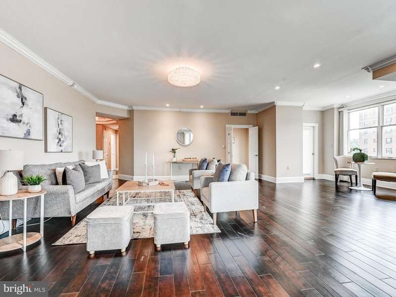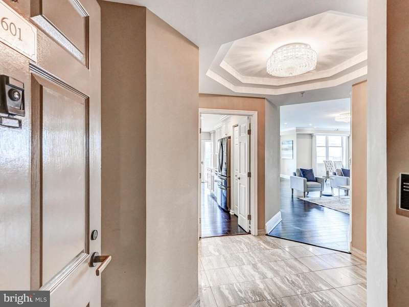 Step into elegance & history with this spacious 1749 sqft two bedrooms & den condo once owned by beloved Oriole legend Brooks Robinson. A marble foyer welcomes you into a beautifully renovated home featuring hardwood floors throughout the living, dining, kitchen & bedroom areas. The gourmet eat-in kitchen is outfitted with granite counters, stainless appliances, new stove & abundant cabinetry. Enjoy indoor-outdoor living with 2 expansive balconies including a private retreat off the primary suite complete with a walk-in closet & spa-like bath with whirlpool tub & separate shower. The versatile den provides the perfect space for a home office or cozy lounge. This fabulous property was fully renovated in 2017 including the HVAC. Also there are 2 deeded garage spaces included for convenience (P#34 & P#36) & 1 storage locker. Amenities include 24 hour concierge service, valet parking & fitness center. This one is a home run! Must be seen!