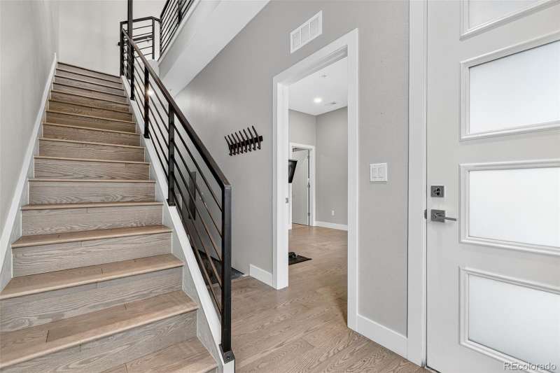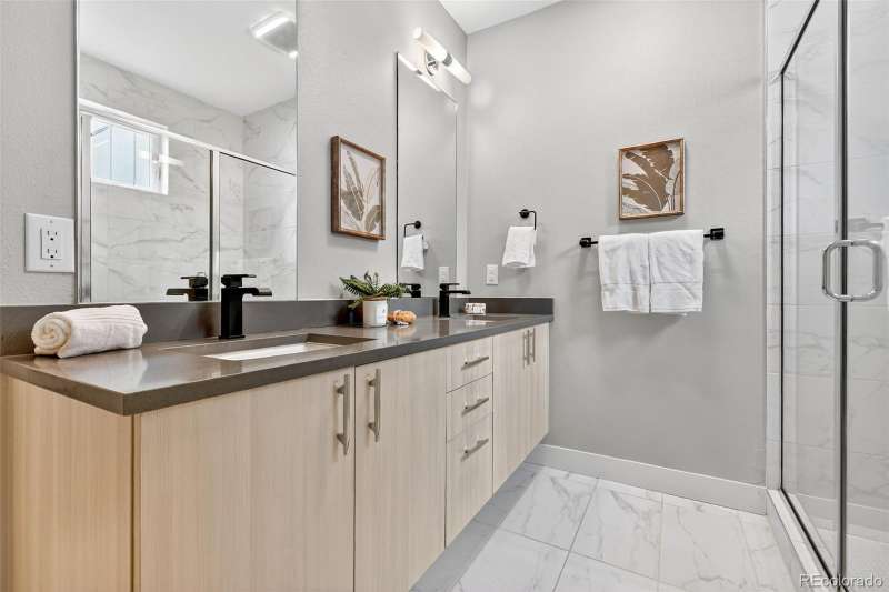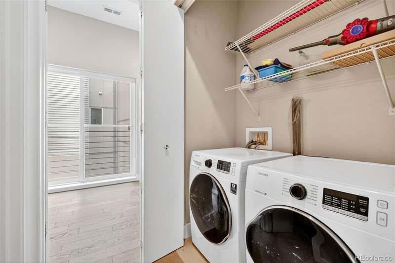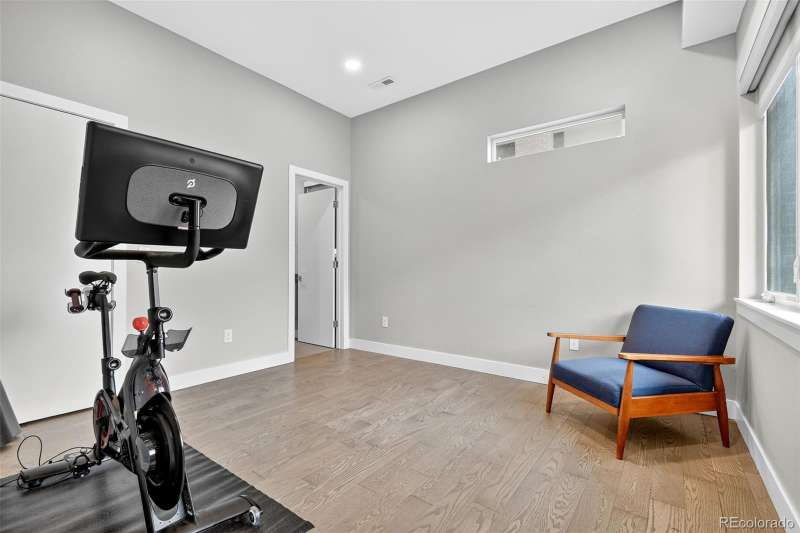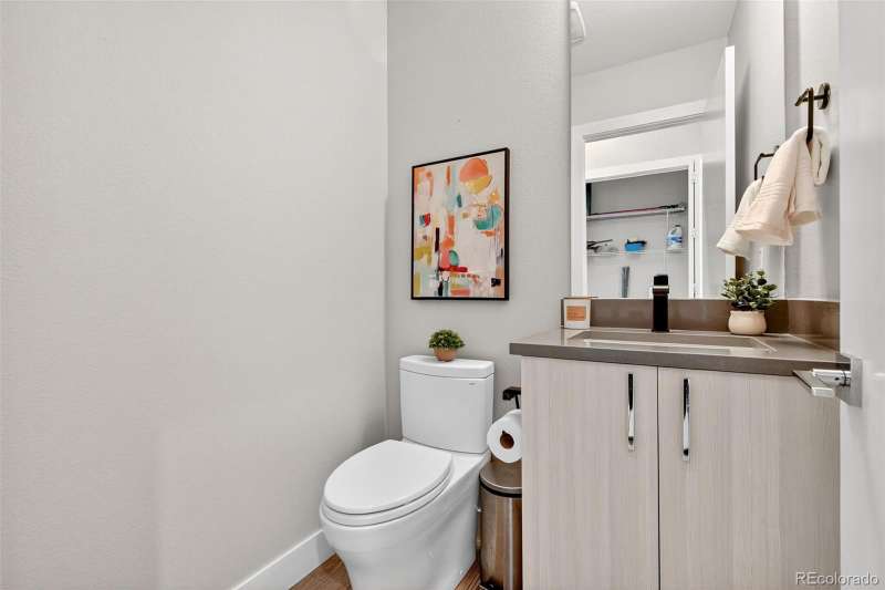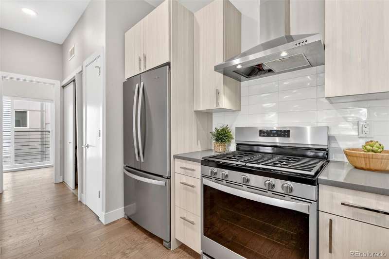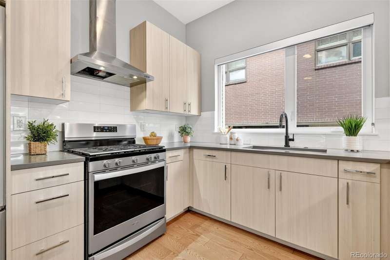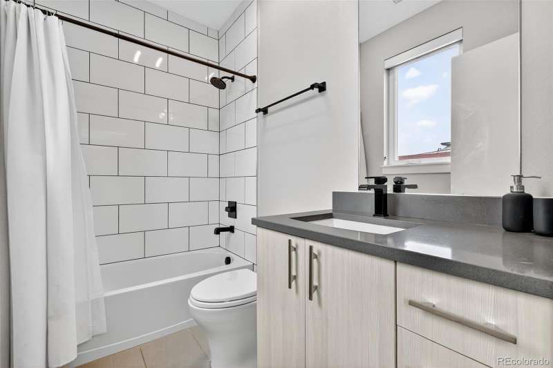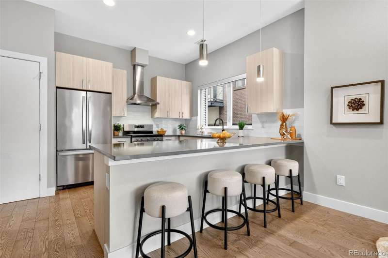 Located in the heart of Denver, this modern townhome offers effortless access to some of the city's most vibrant destinations; the Highlands, Tennyson Street, and downtown are all just minutes away. Inside, the open and light-filled layout connects the living, dining, and kitchen areas, creating an ideal space for both relaxing and entertaining. The kitchen features sleek cabinetry, quartz countertops, stainless steel appliances, and a generous counter that anchors the main level. Two outdoor spaces on the main level include a balcony off the living room and a Juliet balcony off the den or office area. Upstairs, the spacious primary suite includes a walk-in closet and a well-appointed bathroom with dual sinks and a large shower. An additional bedroom with its own ensuite bathroom provides privacy for kids or guests. A convenient powder bath is located on the main floor, and the laundry is thoughtfully positioned near the bedrooms. The entry level features a third bedroom and full bathroom, perfect for a private office or guest suite. The rooftop deck delivers city views and plenty of space to host friends and family. The oversized one-car garage is equipped with a lift system, allowing room for a second vehicle. With its clean modern design and low-maintenance exterior, this home offers the best of city living without the upkeep.
