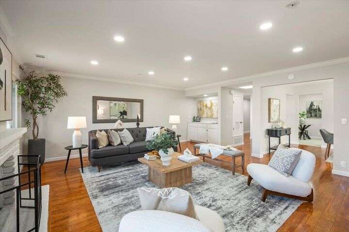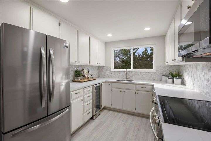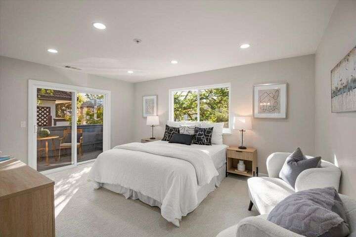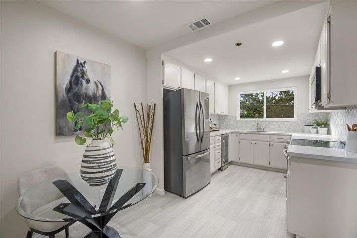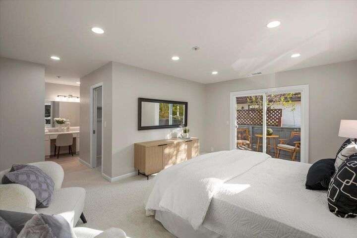 Beautifully updated top-floor condo in downtown Los Altos offering 1,628 sq ft that lives like a single-family home. Spacious living and dining areas, oversized balcony, and gas-burning fireplace. Updated kitchen with new countertops, full-height backsplash, and new stainless steel appliances. Primary suite includes an extra-large walk-in closet, en suite bath, private balcony, and newly carpeted bedroom. Second bedroom is also newly carpeted and ideal for guests or an office. In-unit laundry and detached private 1-car garage. Steps to shops, cafes, and all downtown amenities.