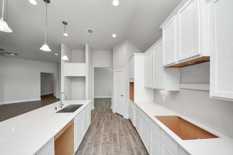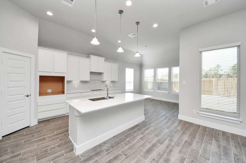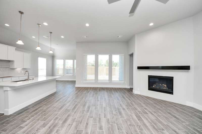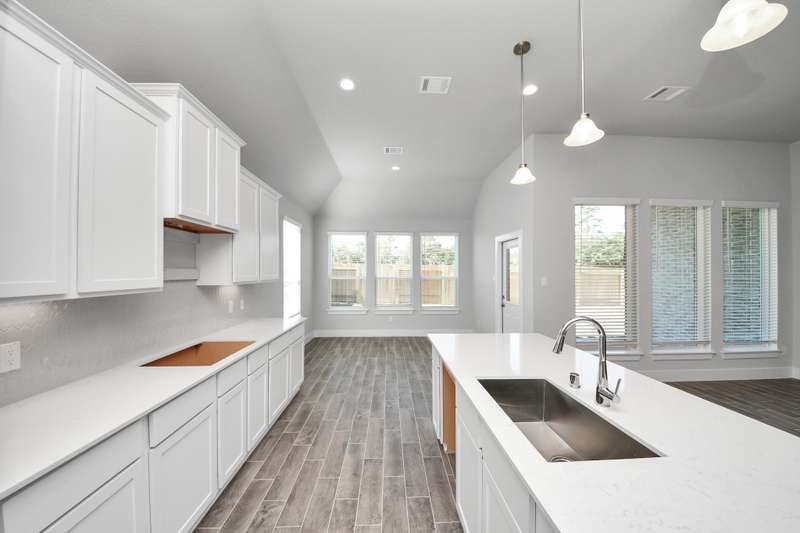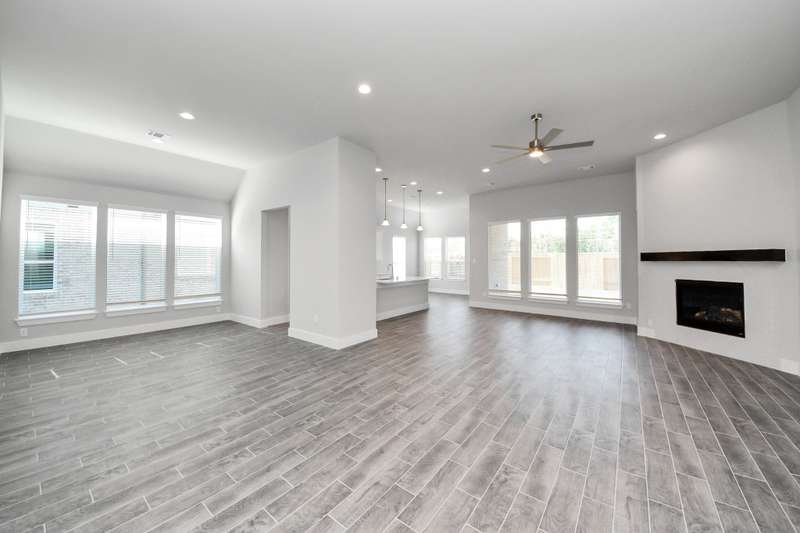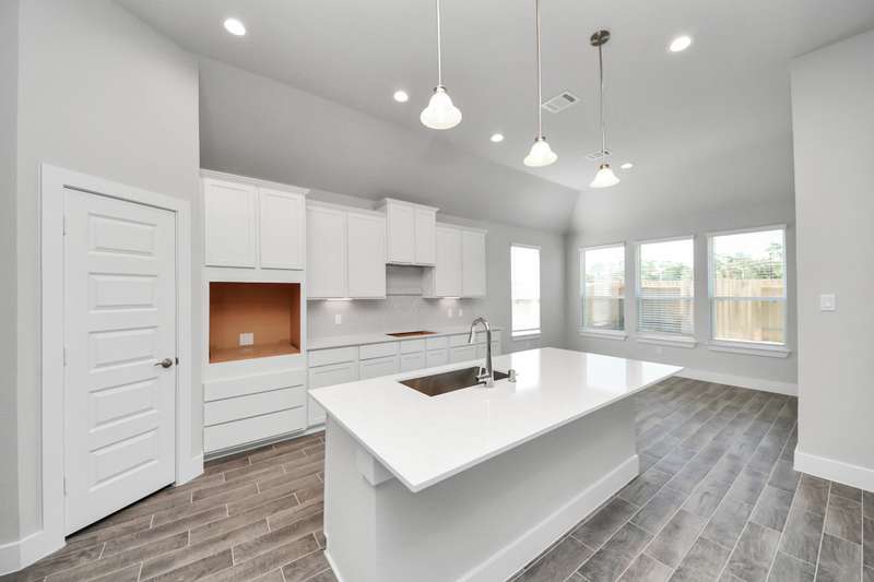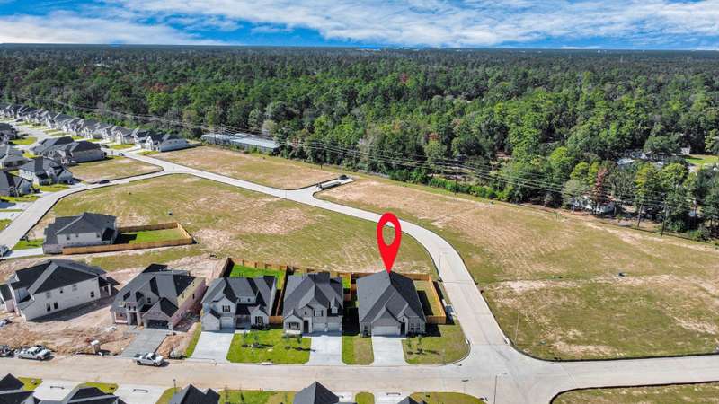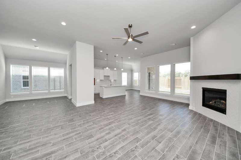 LONG LAKE NEW CONSTRUCTION - Welcome home to 3121 Skerne Spring Drive located in the community of Bradbury Forest and zoned to Spring ISD. This floor plan features 4 bedrooms, 3 full baths, and an attached 2 car garage. This gorgeous one story 4-sided brick home features clay brick at front porch foundation, fireplace with herringbone tile surround and mantel, ceiling fans in family room and all bedrooms, stainless steel appliances, wood framed mirrors in all bathrooms, under cabinet and pendant lighting as well as quartz countertops in the kitchen, rain glass window in primary bathroom, 2" faux wood blinds throughout home, black exterior coach lights, full gutters, sprinkler system, rear covered patio with gas stub out, and much more! You don't want to miss all this gorgeous home has to offer! Call to schedule your showing today!