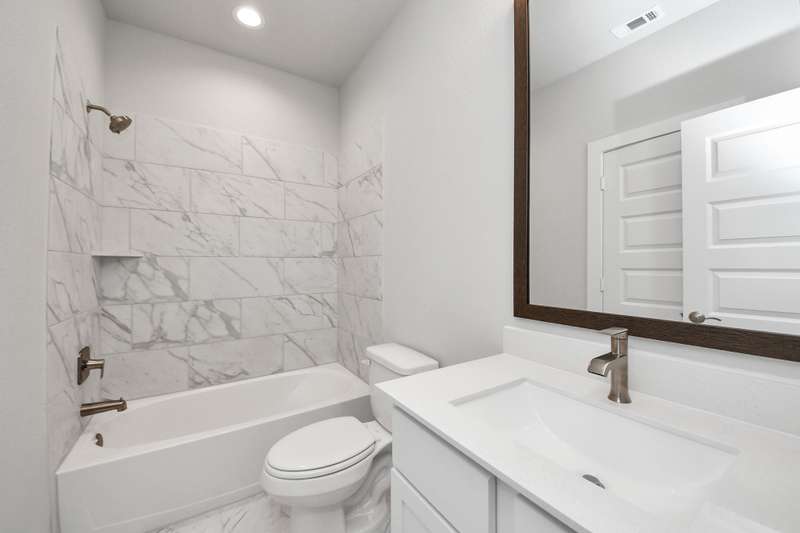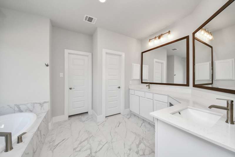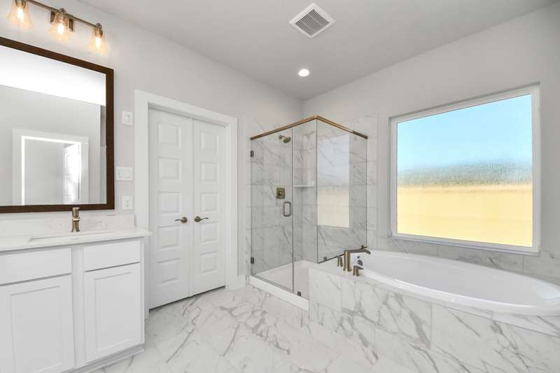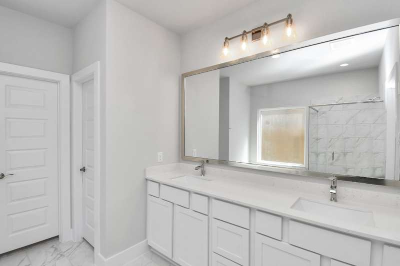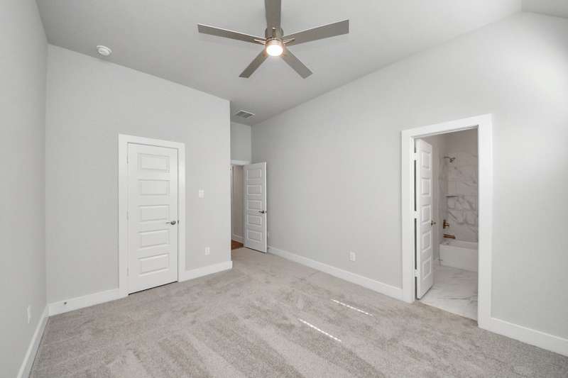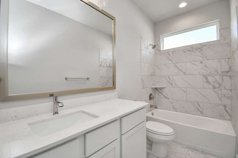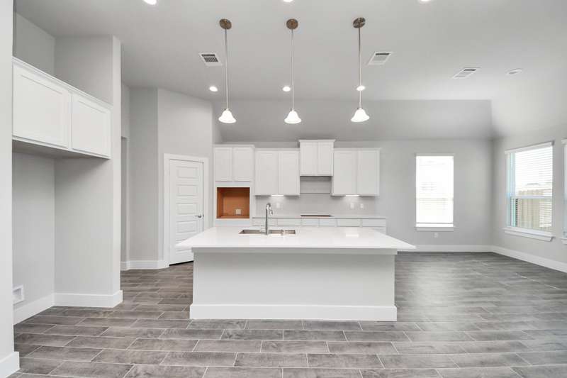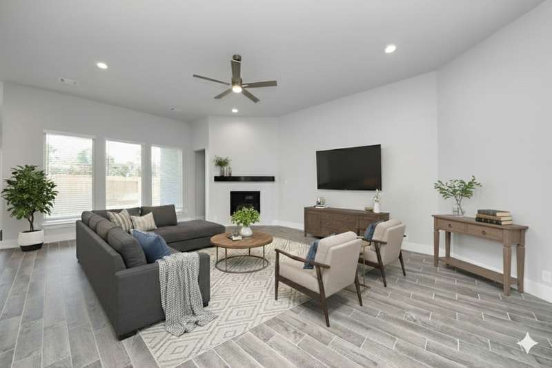 LONG LAKE NEW CONSTRUCTION - Welcome home to 3121 Skerne Spring Drive located in the community of Bradbury Forest and zoned to Spring ISD. This floor plan features 4 bedrooms, 3 full baths, and an attached 2 car garage. This gorgeous one story 4-sided brick home features clay brick at front porch foundation, fireplace with herringbone tile surround and mantel, ceiling fans in family room and all bedrooms, stainless steel appliances, wood framed mirrors in all bathrooms, under cabinet and pendant lighting as well as quartz countertops in the kitchen, rain glass window in primary bathroom, 2" faux wood blinds throughout home, black exterior coach lights, full gutters, sprinkler system, rear covered patio with gas stub out, and much more! You don't want to miss all this gorgeous home has to offer! Call to schedule your showing today!