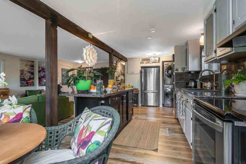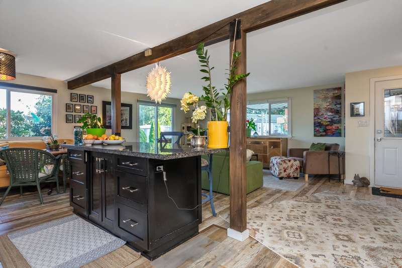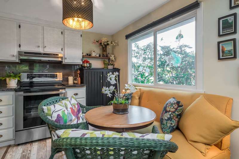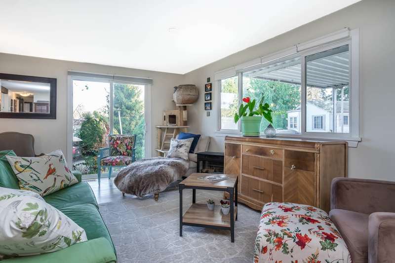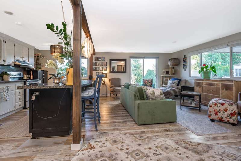 Welcome Home to Breakaway Bays! Fall in love with this gorgeous 3-bedroom, 1-bath Double Wide, full of updates and charm and your very own Catio! Since 2018 — new roof, gutters, hot water tank, windows, doors, brand new kitchen and appliances, flooring, lighting — you name it, it’s done! New covered porch with tons of storage, plus lush gardens in a prime cul-de-sac location! Additional insulation throughout the undercarriage. Your community perks? Outdoor heated pool, clubhouse with library and pool table, loads of activities — all just minutes to the beach, shopping, golf, schools, transit, and the USA border. Seller will pay 6 months pad rental upon closing RV Parking available too! Electricity is included in the pad rent! Don’t miss this rare gem — book your showing today!