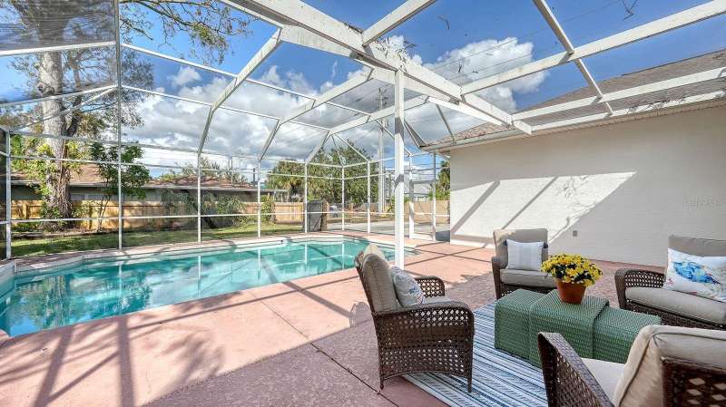 The West of Trail BEST BUY!! Located between Osprey Avenue and Orange Ave, rarely will you find a 2500+ square foot cement block home on an oversized corner lot (100' x 142') with 3 bedrooms, 2 bathrooms, 2 car attached garage and pool for this price. Open floor plan with high ceilings in living areas, wood flooring, spacious living and dining areas, wine cellar, separate laundry room, screened in pool and large lanai. Automatic driveway gate for garage side entry on Osprey and circular drive on Loma Linda. Prime location just down the street from popular Southside Village shops and restaurants and in highly acclaimed schoold districts. Come see for yourself and have a very pleasant surprise. No interior storm damage in the home.