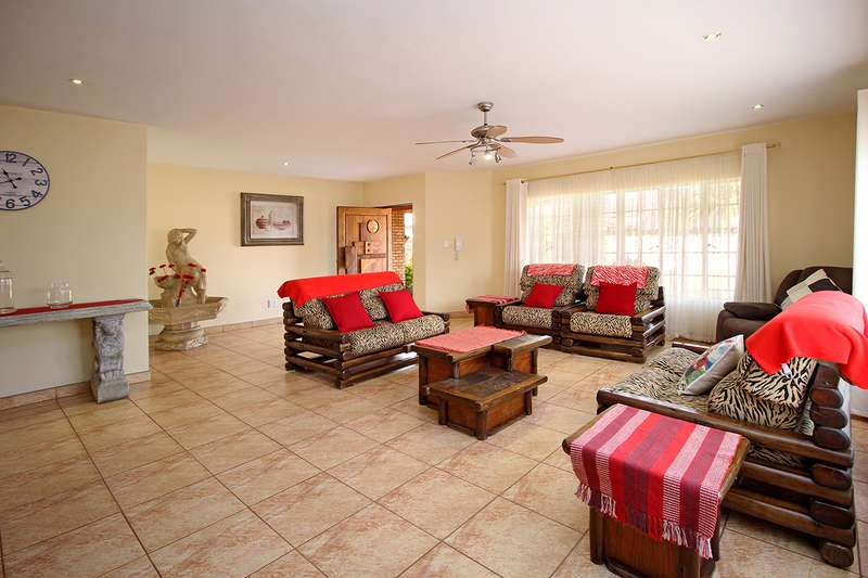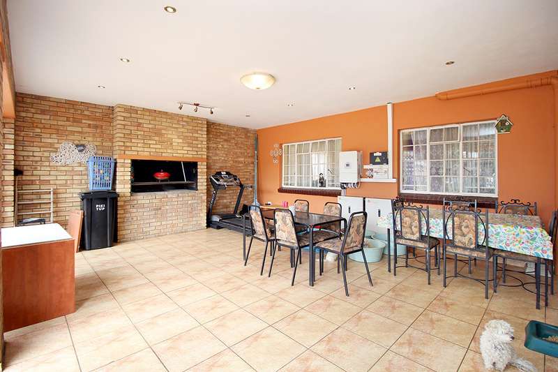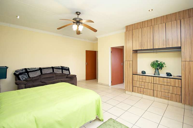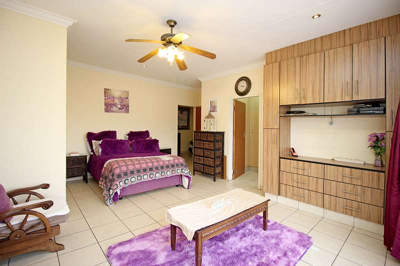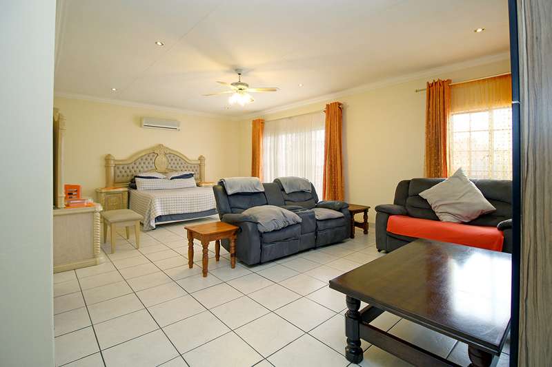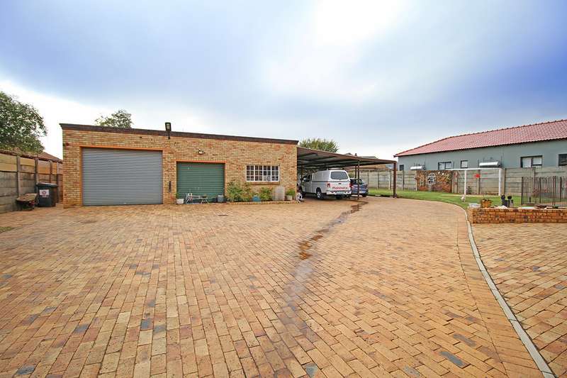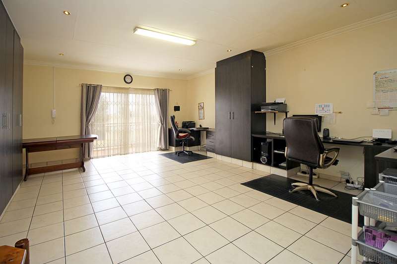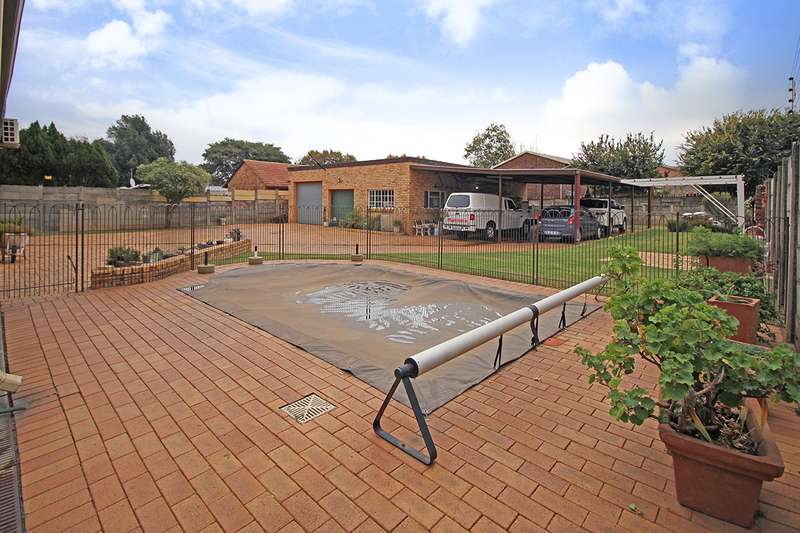 Executive luxury on wings waiting for you and your loved ones. Indulge in a spacious living and comfort in this spacious, neat and well-kept and low maintenance face brick four bedroom home in the heart of Witpoortjie. On the ground floor you will find a spacious tiled lounge with ceiling fan, TV room with air conditioner plus ceiling fan, man cave with air conditioner, guest bathroom, entertainment area with built in braai that can be used as a fire place, sliding and trellidoors, small storage space for your brooms and your hover, small study, laundry, modern kitchen with gas stove, eye level oven, ample storage space for all your kitchen utensils, Upstairs, four bedrooms (main en-suite) fitted with sliding doors and trellidoors leading to the balcony with full bathroom plus shower and walk in cupboards , three other bedrooms with showers and toilets and built in cupboards, office space that can also be used as a bedroom. Solar heated swimming pool, with both net and fence, solar panels workshop space, outside toilet for the convenience of both garden services, maid and workshop personnel. Garage for six cars, carport for 9 cars, workshop office space, staff accommodation, security beams, electric fence, automated gate and well established garden. This property is ideal for doctors, lawyers and workshop owners.