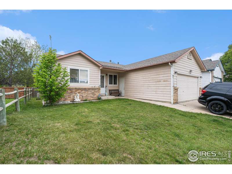 Charming home, bright & sunny with delightful open floor plan, vaulted ceiling, central air, ceiling fans in all bedrooms & living room. Large eat-in kitchen, pantry, and plenty of cabinet space. Master bedroom has walk in closet, and additional linen storage in bathroom. Two car garage and cul de sac driveway. Close to schools, parks, and bike path. Back yard is fully fenced, with a great deck, sprinkler system & storage shed. Great condition, move in ready.