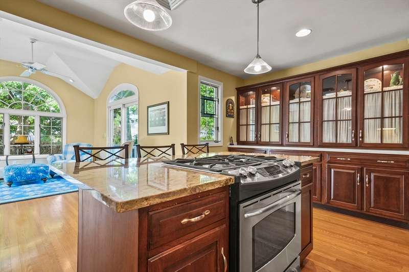 Meticulously maintained in desirable Belvidere, this 3-bedroom, 3-bath Ranch seamlessly combines classic style with modern comfort. Enter the living room where a large picture window fills the space with natural light, highlighting the classic brick fireplace & gleaming HW floors that flow into the dining area. Updated kitchen is a chef’s delight, featuring an island with breakfast bar, stainless steel appliances & an open-concept design that extends into the sitting room, w/ large windows & access to the deck. A cozy den offers custom built-in cabinetry, a beamed ceiling, bay window & a gas fireplace. The spacious primary includes two closets, while 2 additional bedrooms and 2 full baths round out the level. The finished basement adds living space with a family room, full bath & laundry room. Outside, the back deck overlooks a beautifully landscaped yard. A one-car garage adds convenience to this exceptional home.