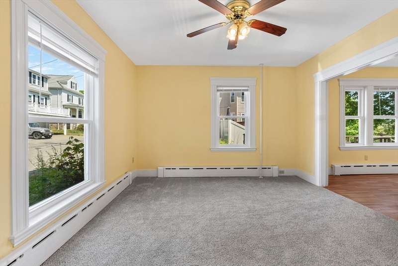 Rare rental available in Ryal Side neighborhood of Beverly! This massive apartment truly feels like a single family home, with loads of privacy, space & charm! Your instantly welcomed by an oversized foyer & sun drenched, open living/dining area with high ceilings, new flooring/carpet, built-ins & plenty of storage space. The kitchen features a butlers pantry, plenty of cabinets, Samsung Glass Range top with microwave, refrigerator & Bosch dishwasher. Enjoy the bright, heated sunroom with slider to private deck, exclusively yours! On the second floor you'll find a playroom or office & two massive bedrooms, plus a full, updated bath. Bonus room on the third floor could be an additional bedroom, or rec room. All of this versatile space with water views of Bass River! Unfinished basement for storage & your dedicated washer/dryer. Conveniently located close to train station, bus stops, Cummings Center, downtown Beverly, beaches & much more! No pets, no smoking. Two car parking.