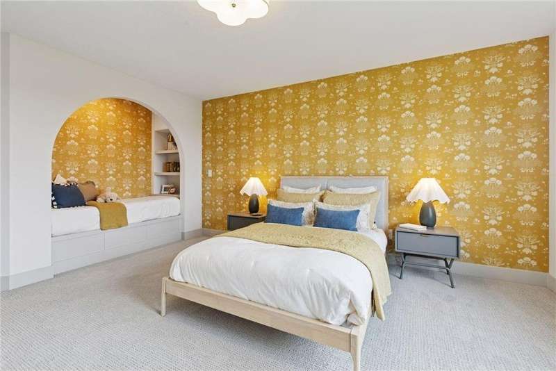 Hanson Builders SHERWOOD SPORT is under construction and will be showcased in the 2025 Fall Parade of Homes in WESTON WOODS! The Sherwood Sport blends timeless craftsmanship with modern design, showcasing 10’ main-level ceilings, custom wall and ceiling details, distinctive accent lighting, a prep kitchen, and a versatile indoor Sport Center. The kitchen impresses with a unique angled island, two-tone cabinetry, and a large prep pantry for ample storage. A striking cast concrete fireplace anchors the great room, while the inviting sunroom offers serene views of wetlands and mature trees. The executive office offers built-in cabinetry, four paneled walls and plenty of natural light. Unwind in the private owner’s suite, featuring a vaulted spa-inspired bathroom with dual vanities, a clawfoot tub, and separate walk-in closets. Three additional bedrooms offer day beds and walk-in closets. Designed for entertainment, the walkout lower level features an indoor Sport Center, family room, impressive wet bar, theater rail, and a fifth bedroom. Insulated and heated 4-car garage with floor drains. Wayzata School District! Community Pool, Clubhouse, Pickle Ball Court and Playground available for all residents. Hanson Builders has available lots and spec homes in Weston Woods!
