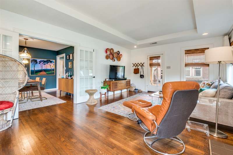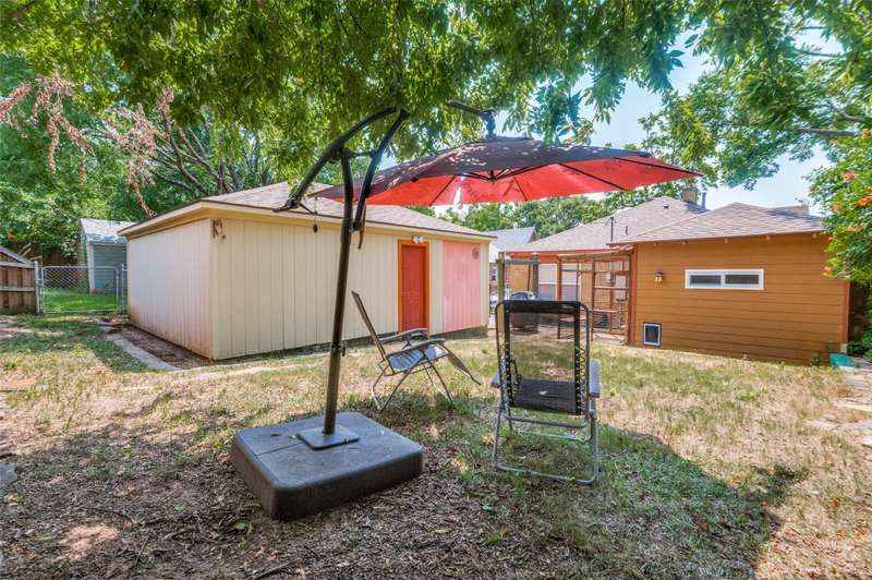 This home qualifies for a $15,000 grant to be applied towards closing costs and down payment! Absolutely adorable! Not only is this house in move-in condition, it's in one of my favorite neighborhoods in Oak Cliff. The rolling hills...the mature trees...the close proximity to downtown and Bishop Arts. It's basically perfect. Having a 2-car garage is uncommon, and you also get 2 good sized bedrooms, and a massive living area, plus a bonus room perfect for a meditation room, home gym, or music room. Large, terraced backyard and huge front patio for those that love the outdoors. The kitchen had a total makeover in 2024 to include custom cabinets, new counter tops, and did you see that vintage stove? OMG love! The matching fridge will stay with the house.