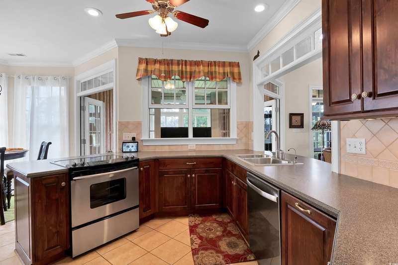Elegant Golf Course Living in Crow Creek Spacious, Stylish & Serene Welcome to this beautifully maintained 4-bedroom (potentially 5), 3.5-bathroom home in the desirable Crow Creek Golf Community, offering an exceptional blend of comfort, elegance, and scenic golf course views. With the potential for a 5th bedroom, custom architectural details, and an abundance of natural light, this home is designed to impress. A Grand Entrance & Elegant Details As you step inside, the brick exterior, custom trim work, and prestige landscape lighting set the stage for timeless sophistication. The grand foyer opens into a spacious main living area adorned with decorative columns, and wainscoting in the formal dining room, creating a warm yet refined atmosphere. A Chefs Dream Kitchen The heart of the home is the beautifully appointed kitchen, featuring: Solid Surface countertops, Stainless steel KitchenAid appliances, Ultra-quiet dishwasher (approx. 2 years old), Electric Cooktop Stove, Tile flooring for durability and style, Transom windows for extra natural light Sun-Soaked Living Spaces This home boasts two incredible sun-filled spacesa Carolina room and an additional sunroom off the rear of the home, both designed for relaxation and year-round enjoyment. The Carolina room is a bright and airy retreat, perfect for morning coffee or a cozy reading nook. The rear sunroom (added in 2015-2016) offers breathtaking views of the pond and 2nd fairway, with a mini-split system for year-round comfort. Flexible Living with Bedroom Potential With 4 official bedrooms and the potential for a 5th bedroom, bonus or flex room, this home offers versatility for growing households, guest accommodations, or a dedicated home office. The upstairs features: A spacious bedroom. A full bath with a glass door tub/shower combo Three double door hall closets for additional storage. Carpeting and recessed built-ins adding character and warmth Luxurious & Convenient Features Primary bathroom: Features a double vanity, tiled floors, and a walk in shower with separate bathtub Laundry room: Equipped with a washer, dryer, sink, and cabinets for extra storage Central vacuum system for easy maintenance Handicap accessibility modifications in the garage entry and stairs for enhanced ease of living Outdoor & Structural Highlights Two-car garage modified for handicap accessibility Encapsulated crawl space for added efficiency Whole-house generator wiring for peace of mind New roof (September 2024) & HVAC & vent work updated in 2018 Security system with Blink video monitoring Irrigation system for lush landscaping This gently used, well-maintained home is a perfect blend of style, functionality, and prime location within Crow Creek. Whether you're looking for a peaceful retreat or a space to entertain, this home offers it all. Schedule your private showing today and experience the beauty of golf course living!