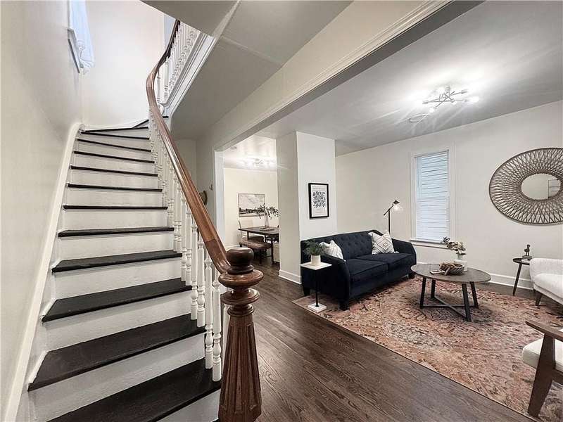 Enchanting Historic Gem in the Heart of Westside. This beautifully restored two-story home offers the perfect blend of timeless character and modern updates. The open, airy floor plan seamlessly connects the living, dining, and kitchen areasaccentuated by soaring ceilings and abundant natural light that fills every room with warmth. At the heart of the home is a stunning, hand-crafted stair rail over 100 years old, leading to the second level where youll find three spacious bedrooms and two full bathroomsa rare feature for this architectural style. Enjoy breathtaking views of Downtown Kansas City and the iconic Kauffman Center for the Performing Arts from the comfort of your home. Thoughtful recent upgrades include newer exterior cedar lap siding, energy-efficient windows, updated insulation, a new backyard deck and fence, and a tankless water heater. Additional improvements such as a newer roof, furnace/AC, and exterior renovations that honor the homes original charm ensure worry-free living with modern comfort. Located just minutes from Westsides popular shops and restaurants, this home is brimming with charm, history, and conveniencean exceptional opportunity in one of Kansas Citys most coveted neighborhoods.