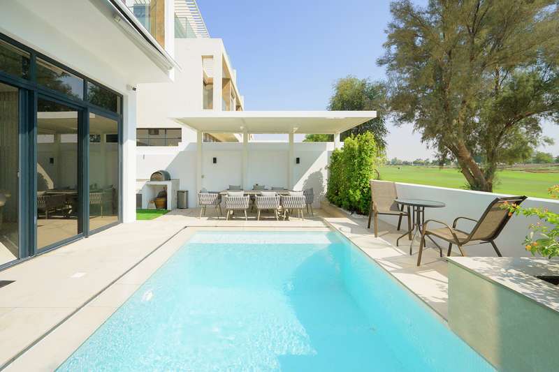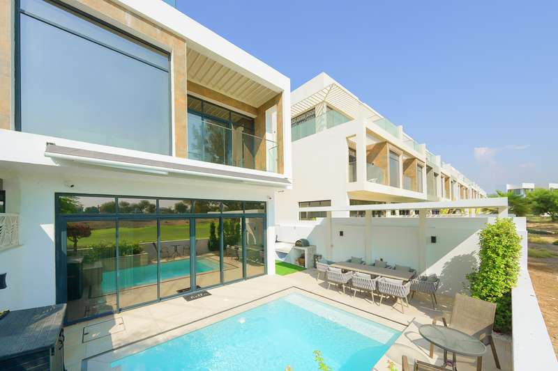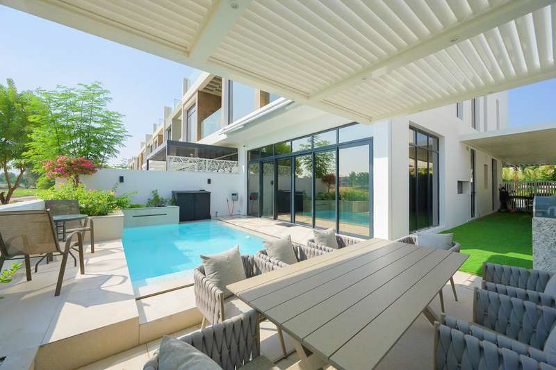 Betterhomes is delighted to present this fully upgraded 4-bedroom plus maid’s townhouse in Jumeirah Luxury Living, set on the prestigious Fire Course at Jumeirah Golf Estates. This rare corner unit blends modern design with bespoke upgrades, offering the perfect balance of style, comfort, and exclusivity. Features: - Full golf course view - BUA - 3,504 Sqft - Plot - 2,809.60 Sqft - Fully upgraded with show kitchen & micro cement flooring - Private pool, pergola & BBQ area - 4 bedrooms plus maid’s room - 2 parking spaces - Gated, secure community - Roof Terrace Amenities: Jumeirah Golf Estates Clubhouse Shared pool, gym & tennis courts F&B and golf membership discounts Jumeirah Luxury Living combines sustainability with modern architecture, giving residents access to world-class facilities and two championship golf courses—Fire and Earth, home of the DP World Tour Championship.