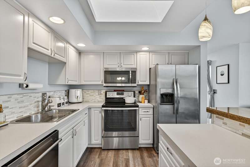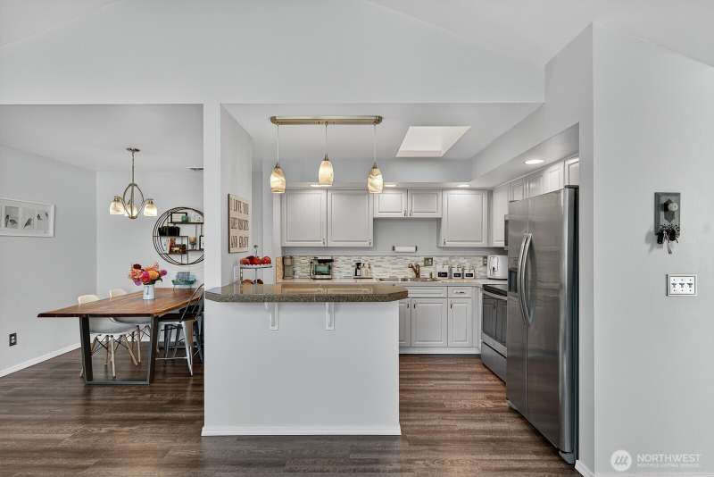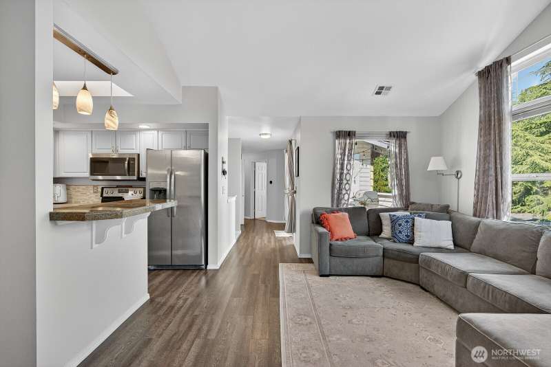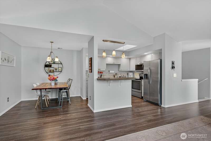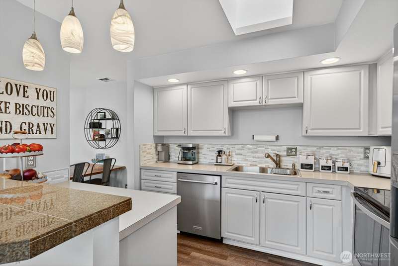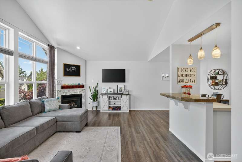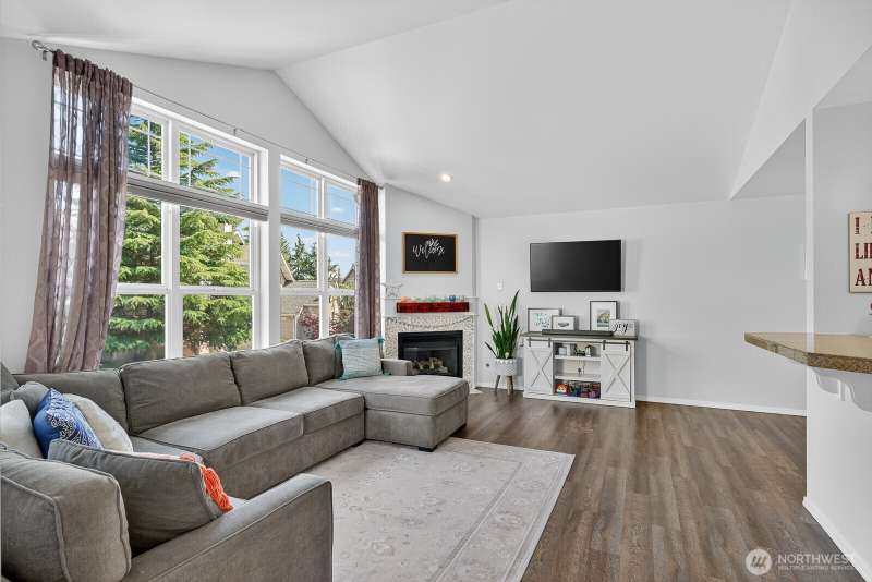 Welcome to Norwood Estates, a very desirable community close to shopping, schools & health care. This 2 bedroom & 1.75 bathroom unit has vaulted ceilings & big windows making it bright & cheery! Nice laminate flooring & brand-new carpet. Kitchen has newer SS appliances, plumbed for future gas range & lots of nice cabinets. Kitchen is open to living room which features a cozy gas fireplace. Large primary bedroom w/walk-in closet & walk-in shower. There's also a private balcony & a one car garage. Come enjoy this wonderful community in a perfect location just a few minutes from I5!